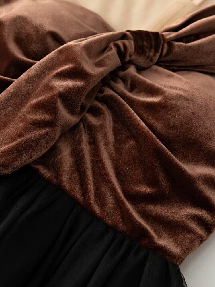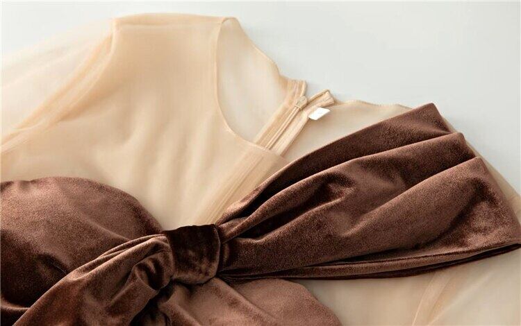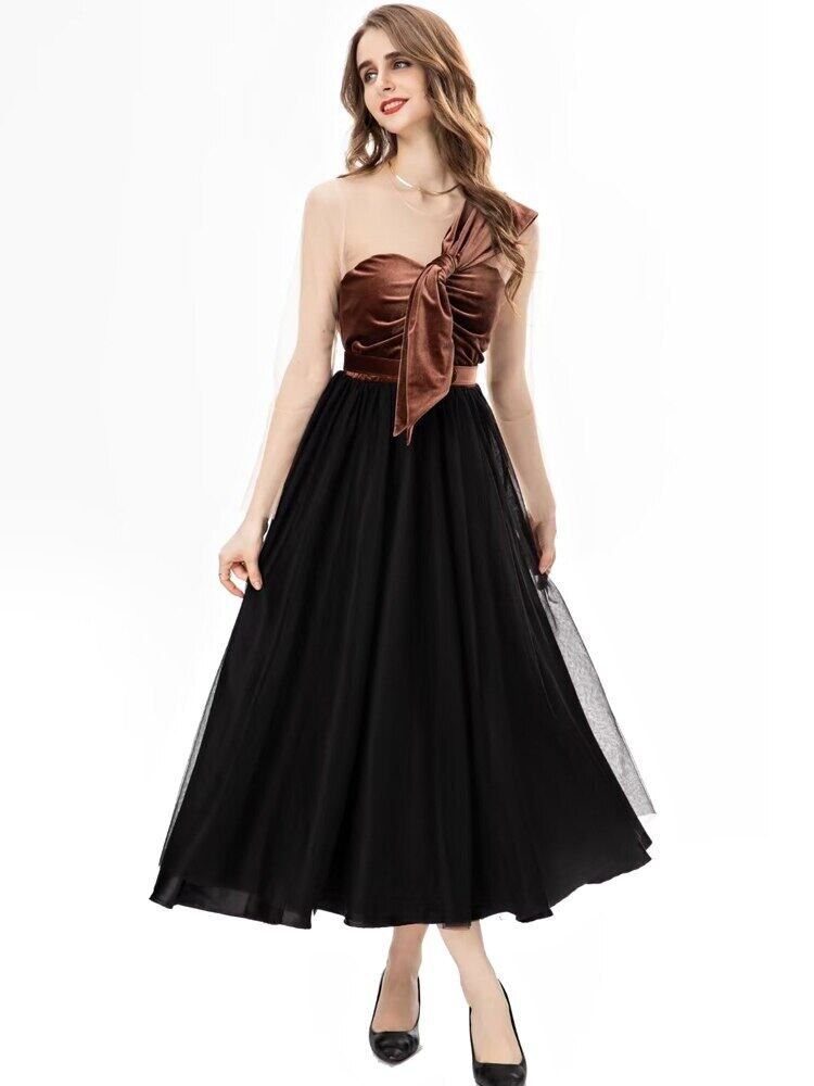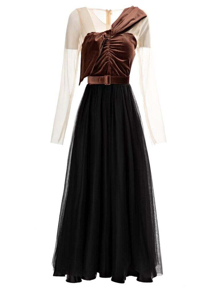 春秋の女性メッシュ長袖ベルベットパッチワークロングドレス有名人パーティーシック スプリング 春物 オータム 秋物 pri90675190936