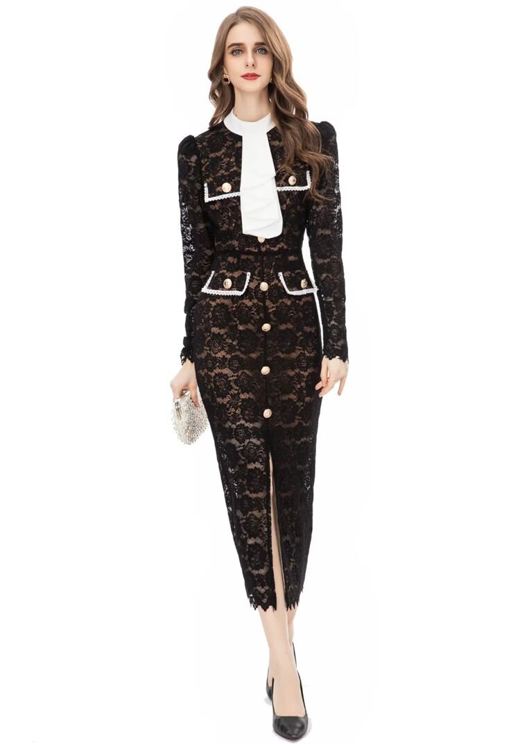 春秋の女性セレブセクシーなミディレースペンシルドレスパーティードレス スプリング 春物 オータム 秋物 pri45707094733