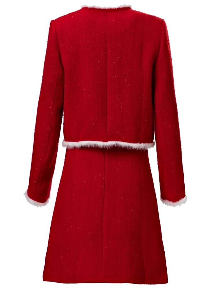 秋の女性のセット ボタン レッド ジャケット トップス ミニ スカート シックなオフィス スーツ オータム 秋物 会社 学校 通勤や通学にも pri27748367947
