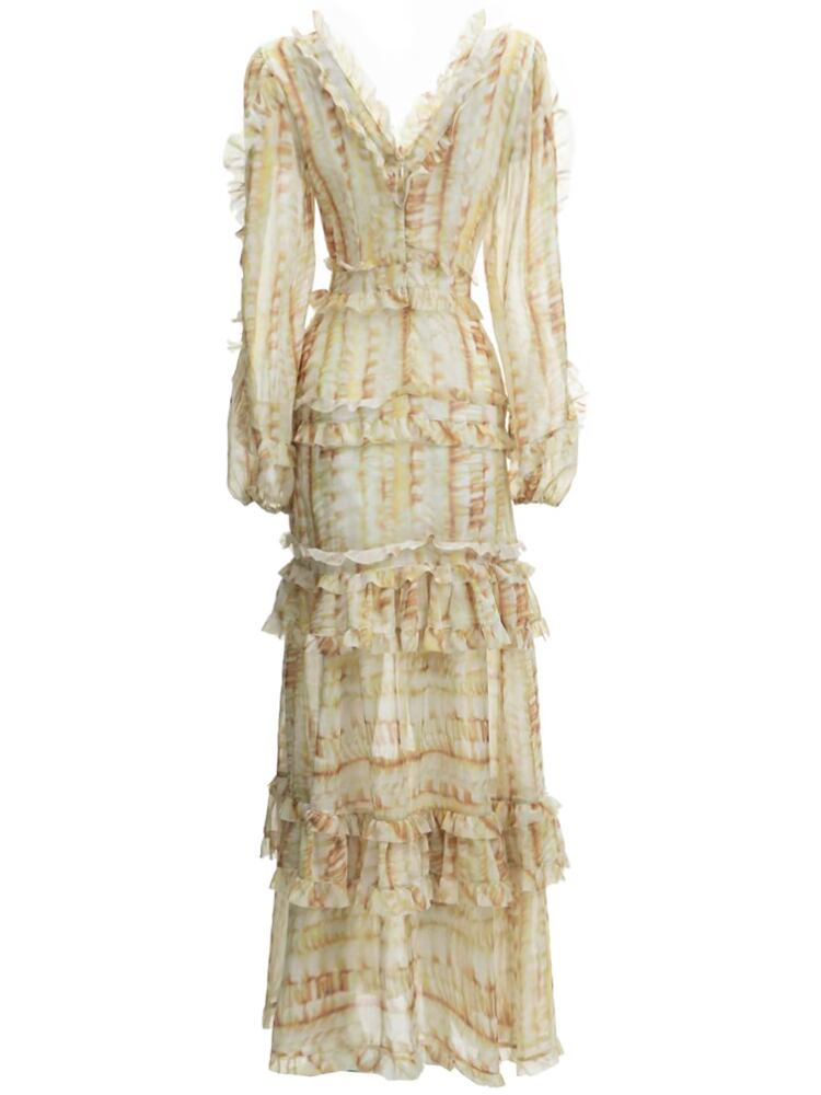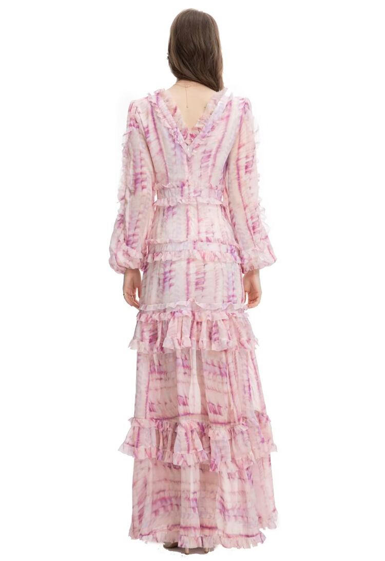 春秋の女性の有名人フリル プリント シフォン ロング ドレス パーティー ドレス スプリング 春物 オータム 秋物 pri35069396031