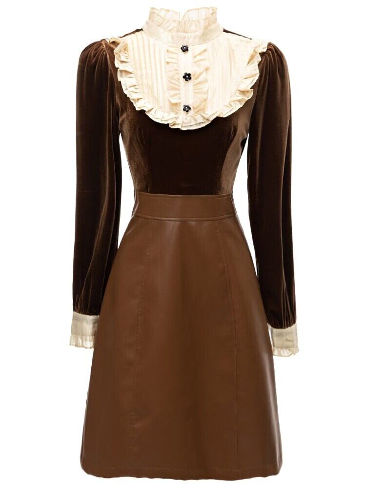 春秋の女性のベルベット パッチワーク Pu レザー ミニ ドレス パーティー シック スプリング 春物 オータム 秋物 pri77756606841