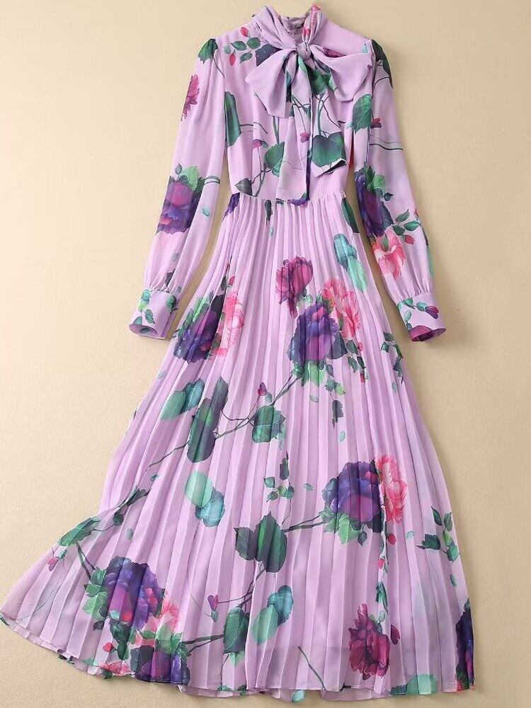 春の女性の有名人ボヘミア長袖プリント シフォン ロング ドレス パーティー ドレス スプリング 春物 pri4716110054