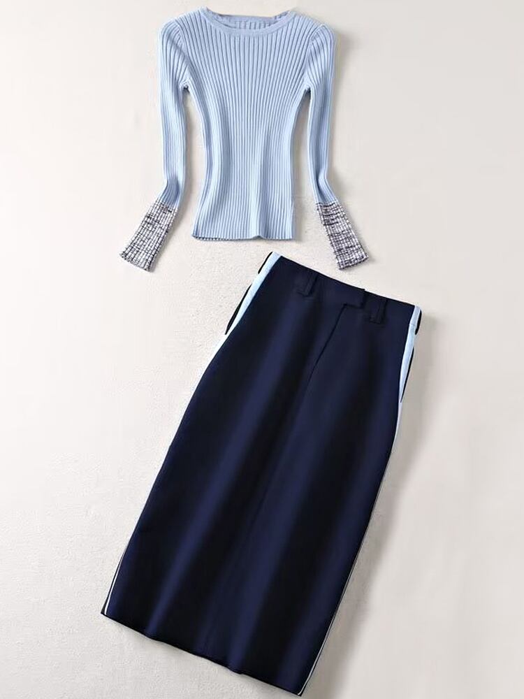 春秋の女性セット ニット トップス スリム フィット スカート職場スーツ レース スプリング 春物 オータム 秋物 pri1124133392