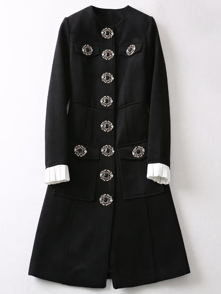 春秋の女性の豪華な有名人のダイヤモンド ボタン ブラック コート ドレス パーティー スプリング 春物 オータム 秋物 pri31576700118