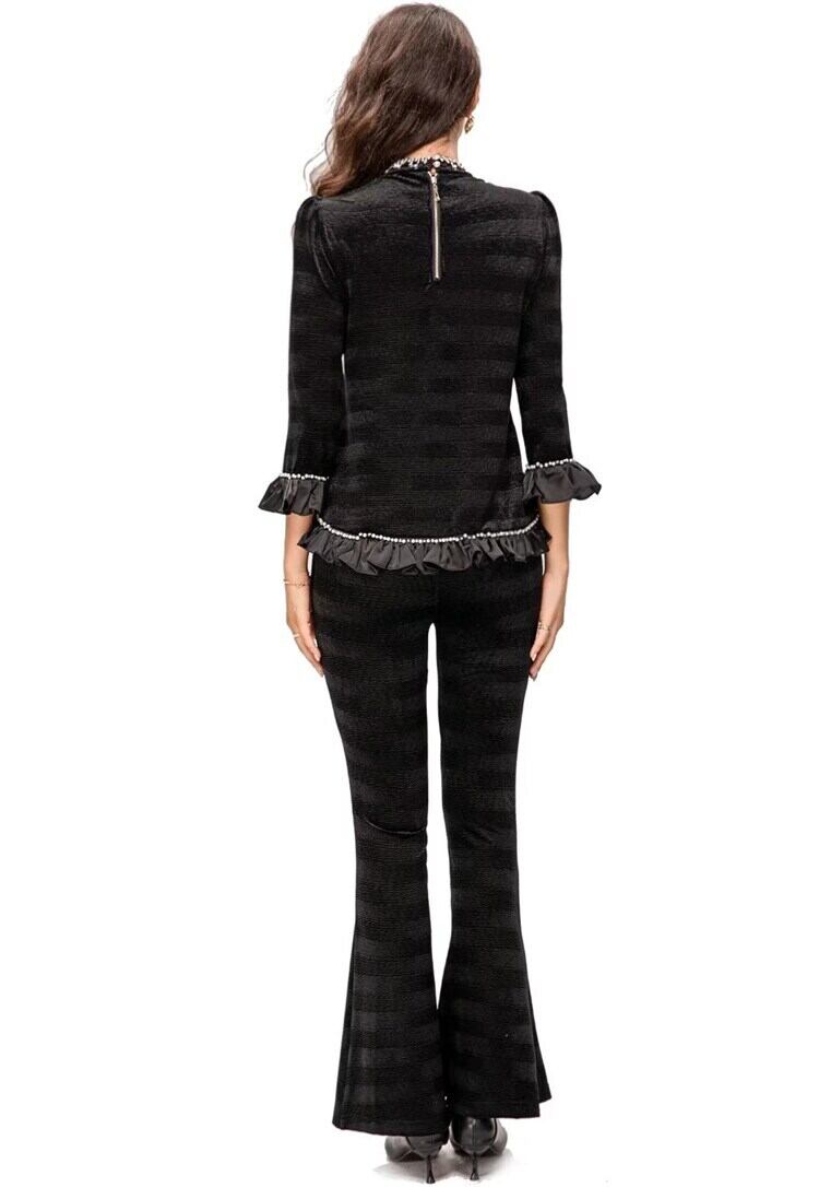 秋の女性のセット ダイヤモンド ビーズ ゴージャスなトップス スリム パンツ ブラック スーツ オータム 秋物 pri57760134050