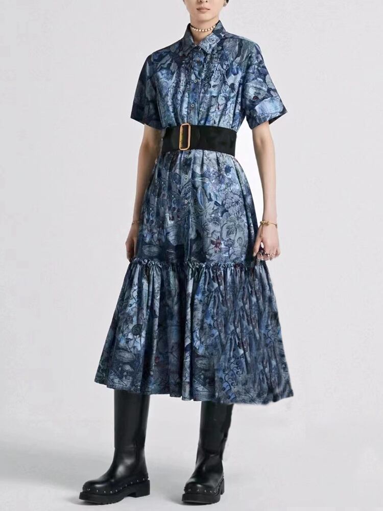 2023春夏レディース半袖プリントミディシャツドレスパーティードレス ショート ハーフスリーブ スプリング 春物 サマー 夏物 pri45904654701