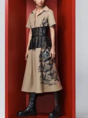 2023 春夏 レディース 半袖 ベルト ミディシャツ ドレス パーティー ショート ハーフスリーブ スプリング 春物 サマー 夏物 ハーネス pri71203595784