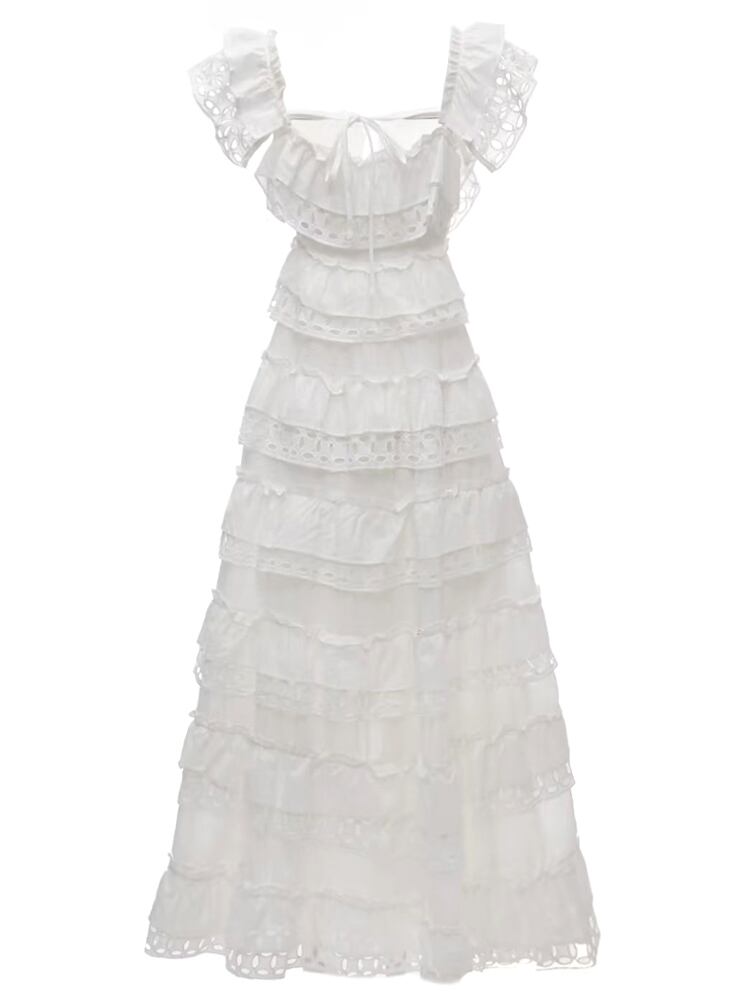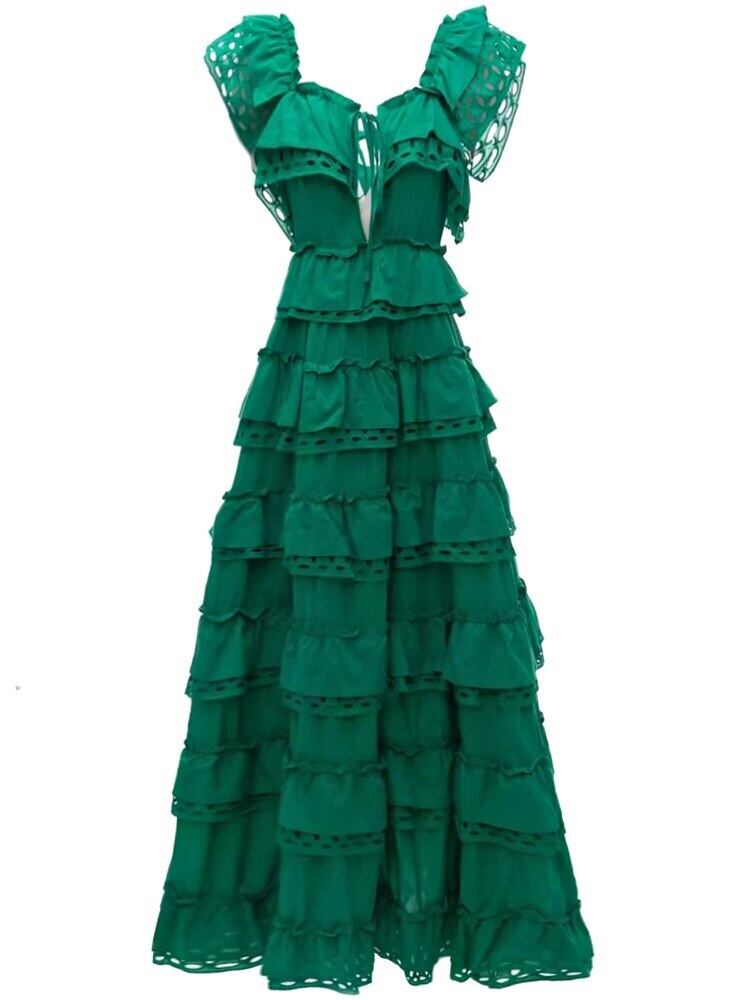 2023 春夏レディースティアードフリルロングドレスパーティーホリデードレス レッド ラッフル スプリング 春物 サマー 夏物 pri33696879111