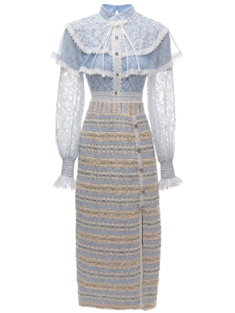 春秋の女性の長袖スリム ツイード ペンシル ドレス パーティー ドレス ロング スプリング 春物 オータム 秋物 pri7237377296