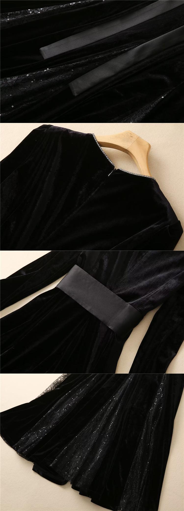 春秋の女性のゴージャスなダイヤモンド V ネック ベルベット ミディ ドレス パーティー スプリング 春物 オータム 秋物 Vネック pri25734522780