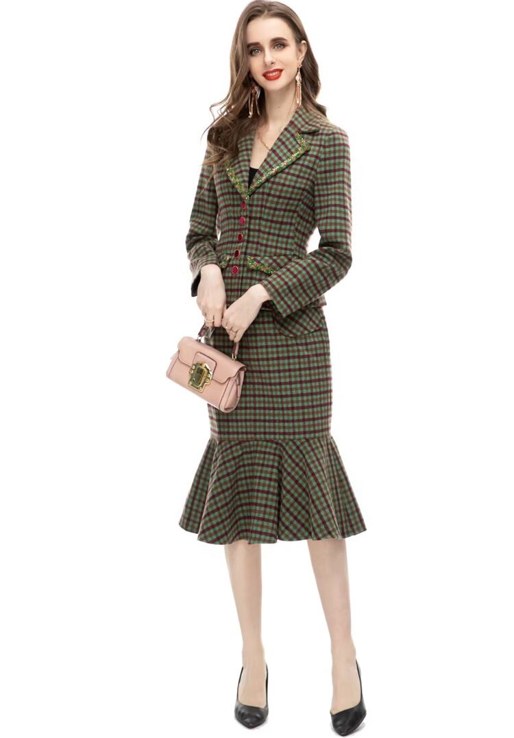 秋冬女性セットビーズスーツトップススリムマーメイドスカート格子縞のスーツ オータム 秋物 ウィンター 冬物 pri6525882225