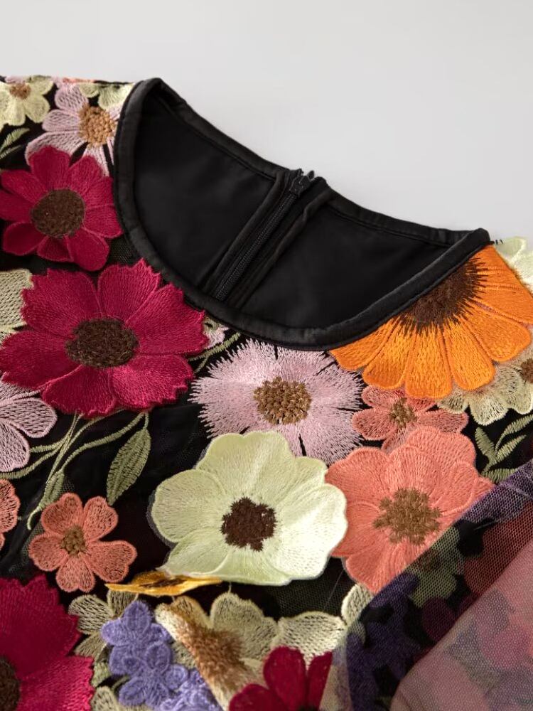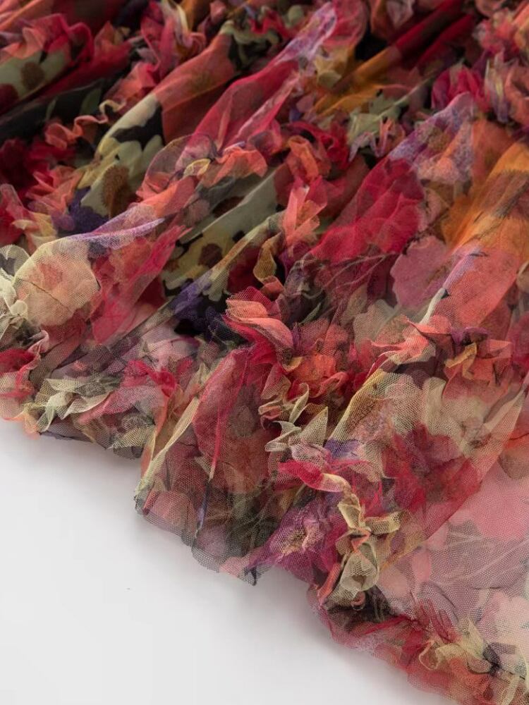 春の女性の豪華なプリント刺繍メッシュ ロング ドレス パーティー ドレス スプリング 春物 pri56852166837