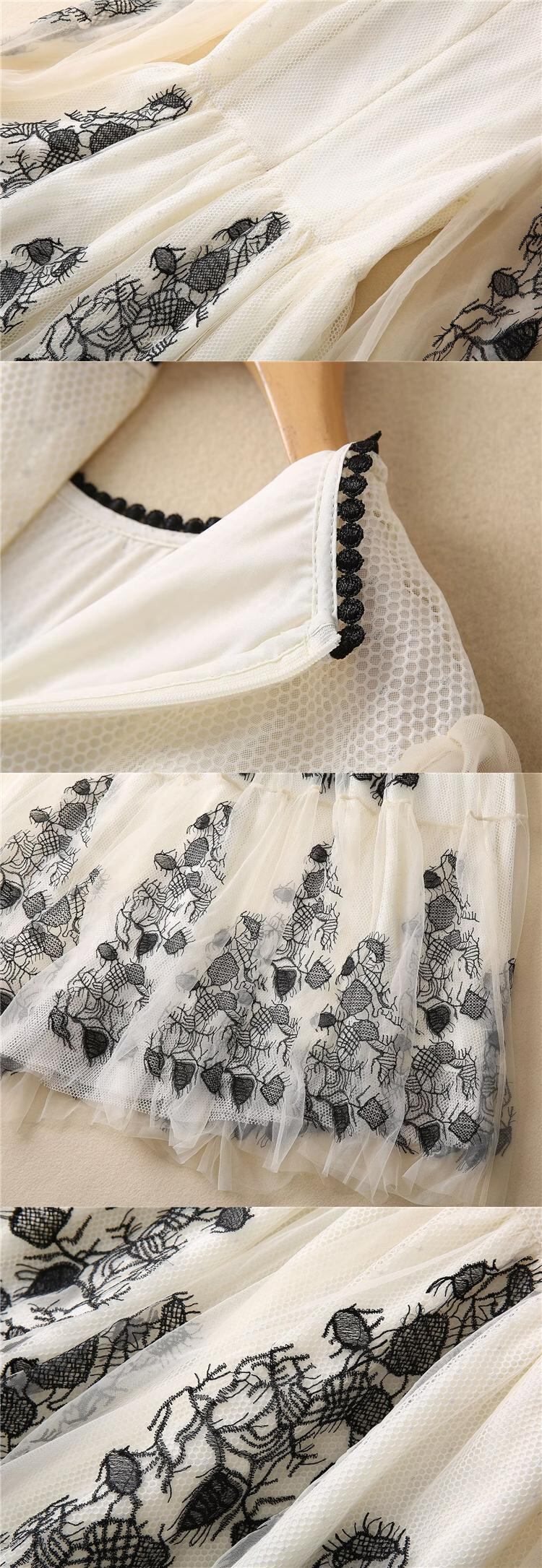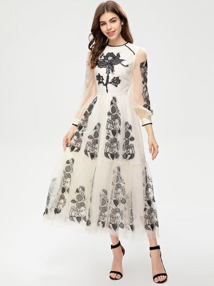 春夏の女性の豪華な刺繍メッシュ ロング ドレス パーティー休日 スプリング 春物 サマー 夏物 pri26869746894