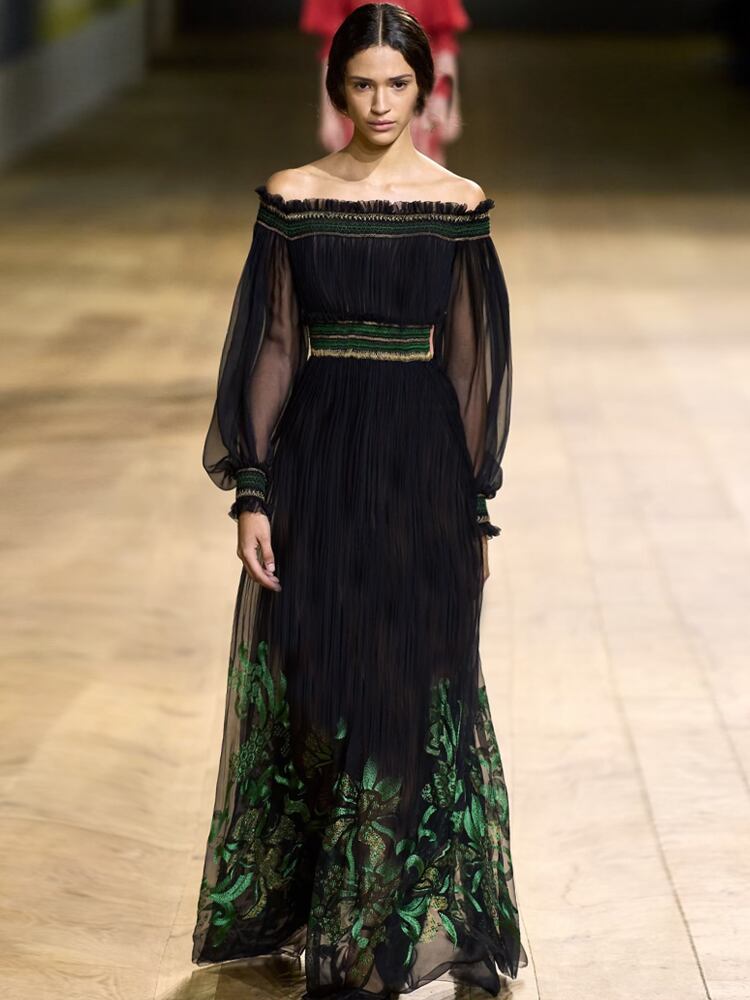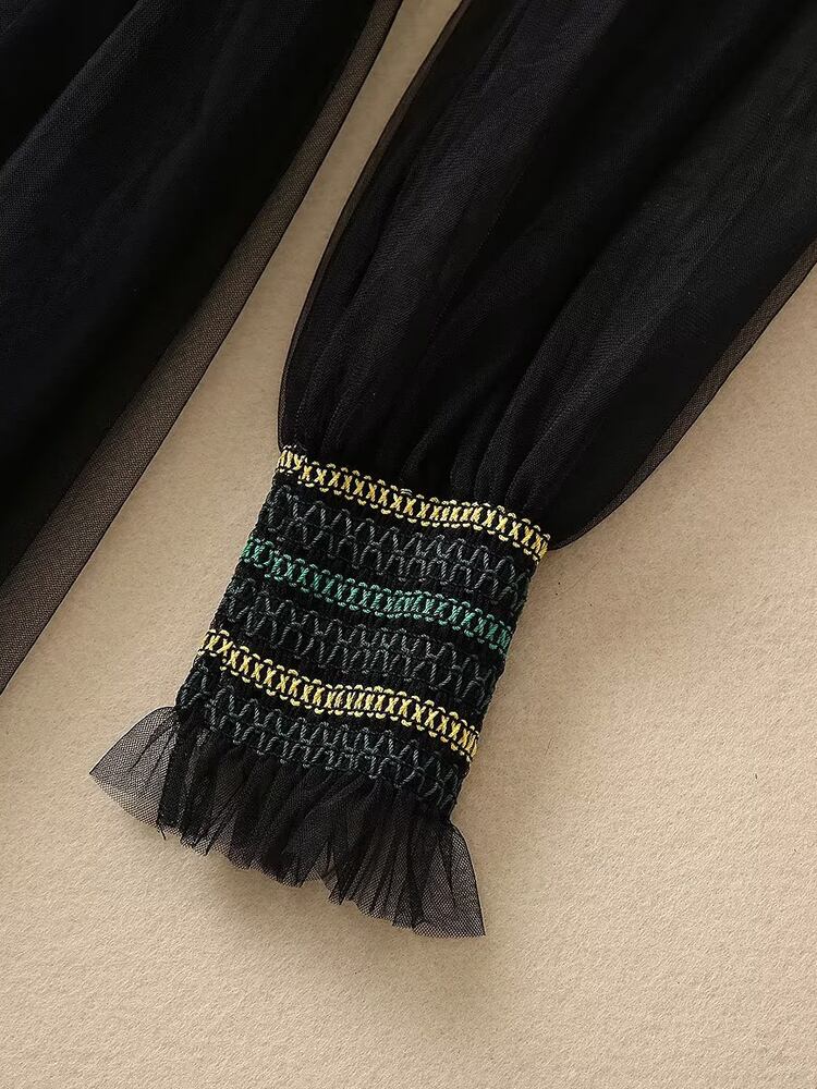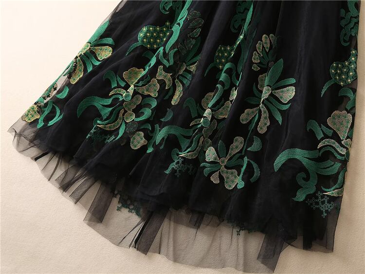 春夏の女性のゴージャスなセクシーな刺繍メッシュブラックロングドレスパーティーホリデー スプリング 春物 サマー 夏物 pri58230348280