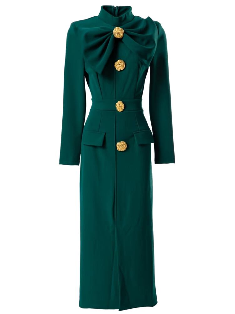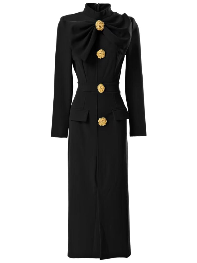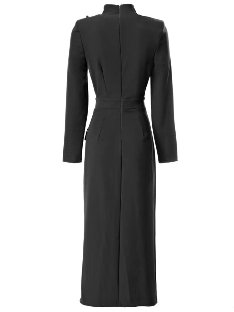 春秋の女性の長袖スリム ボタン ミディ ドレス パーティー オフィス ロング スプリング 春物 オータム 秋物 会社 学校 通勤や通学にも pri24564171052