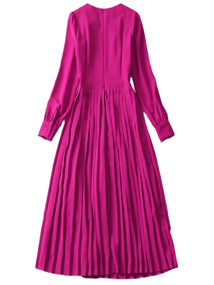 春秋の女性長袖フラワー プリーツ ミディ ドレス パーティー ロング スプリング 春物 オータム 秋物 フラワーデザイン pri19661104074