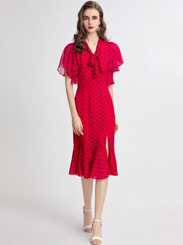夏の女性のドット ミディ ドレス パーティー ホリデー ドレス サマー 夏物 pri7118610129