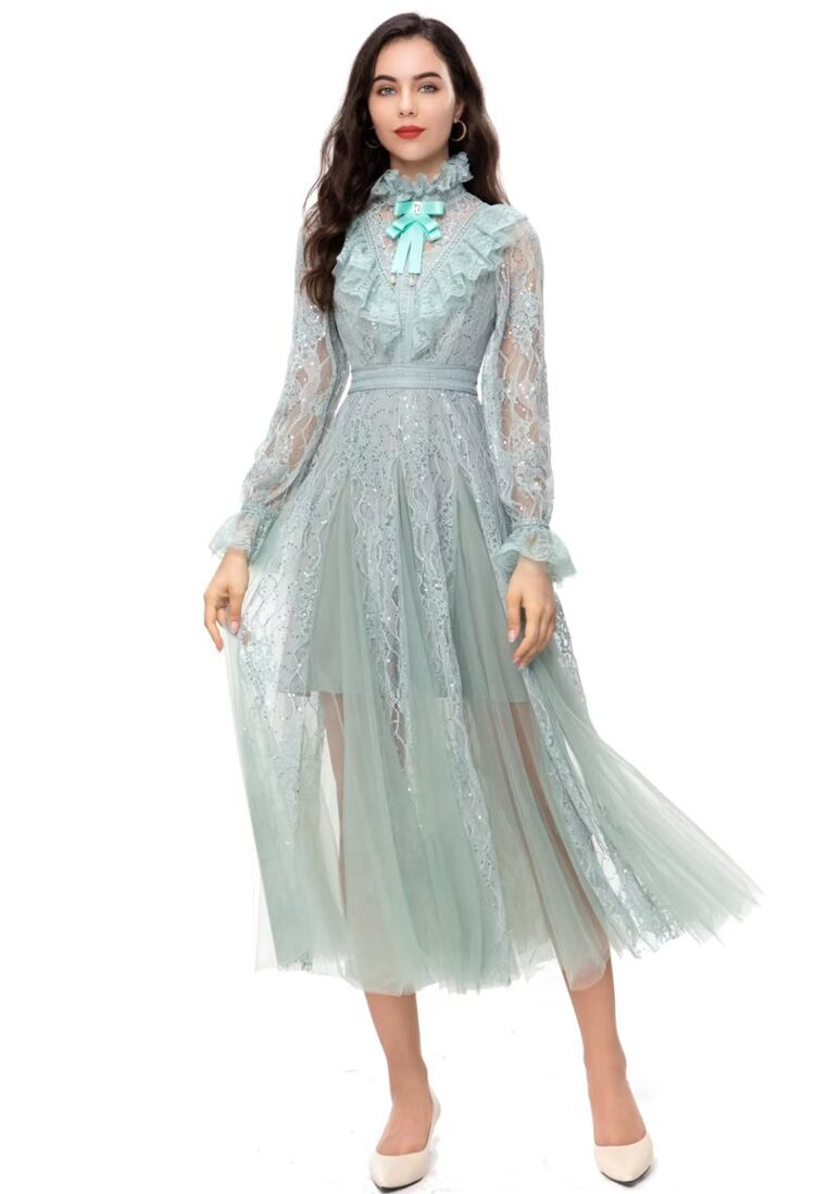 春秋の女性レース スパンコール ゴージャスなミディ ドレス パーティー ドレス スプリング 春物 オータム 秋物 pri9146647530
