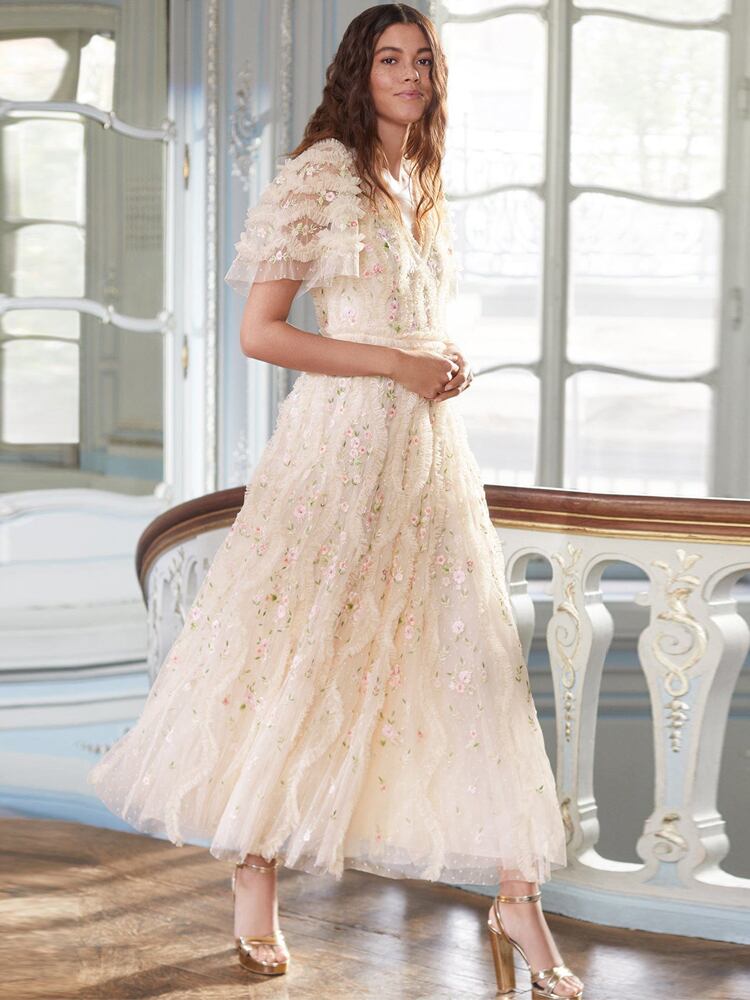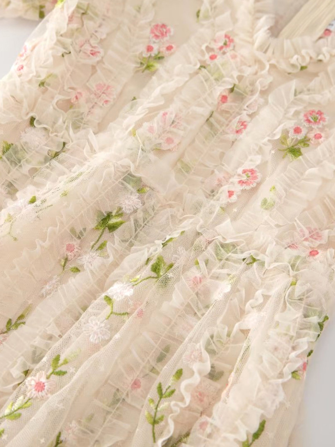 夏の女性のゴージャスな花の刺繍ロングドレスパーティーホリデードレス サマー 夏物 フラワーデザイン pri8994932761
