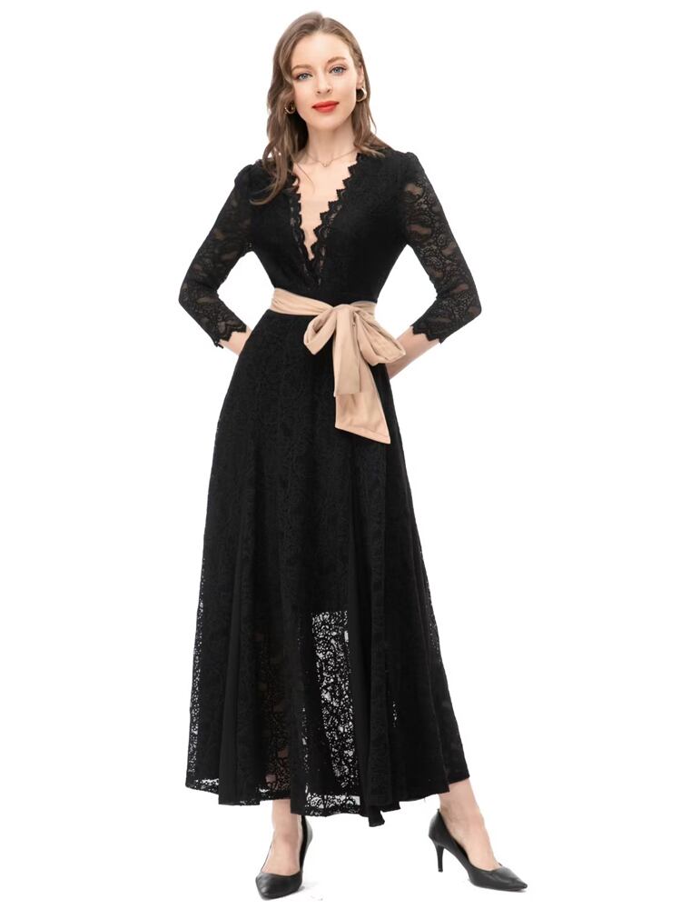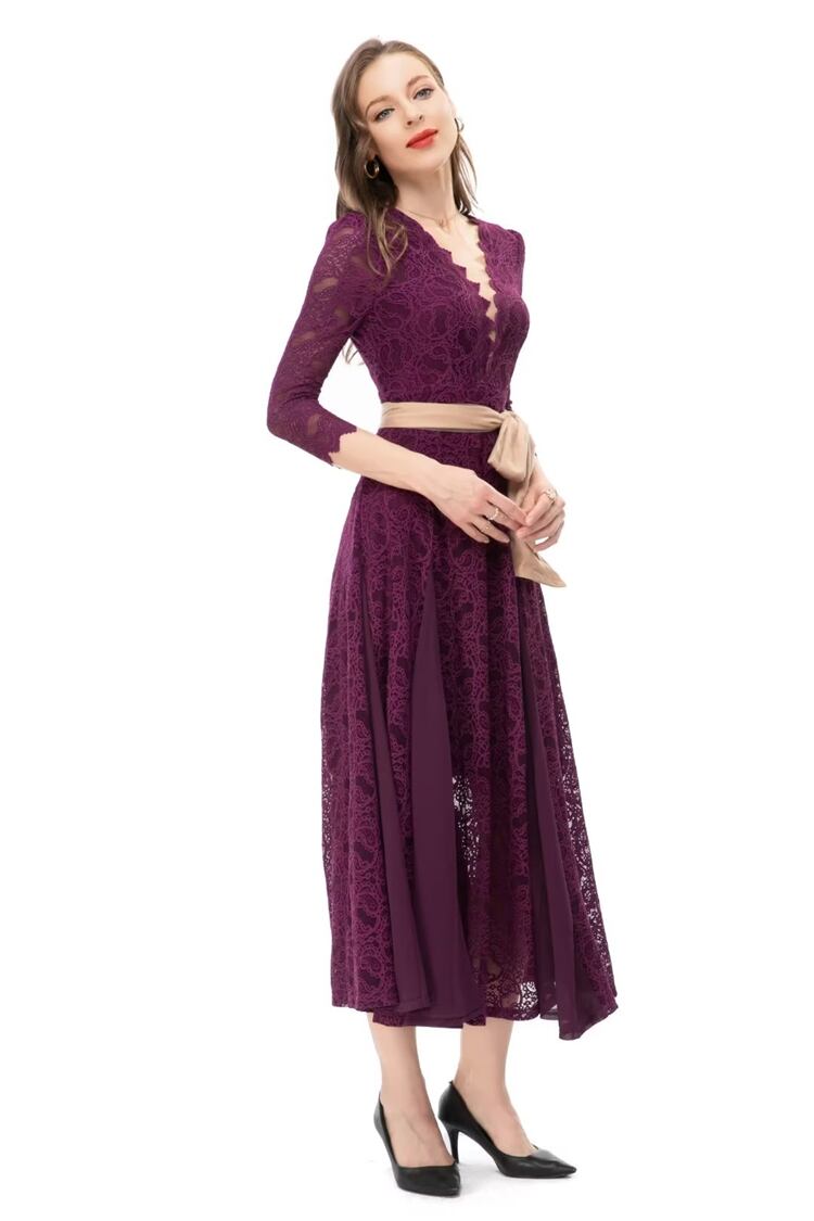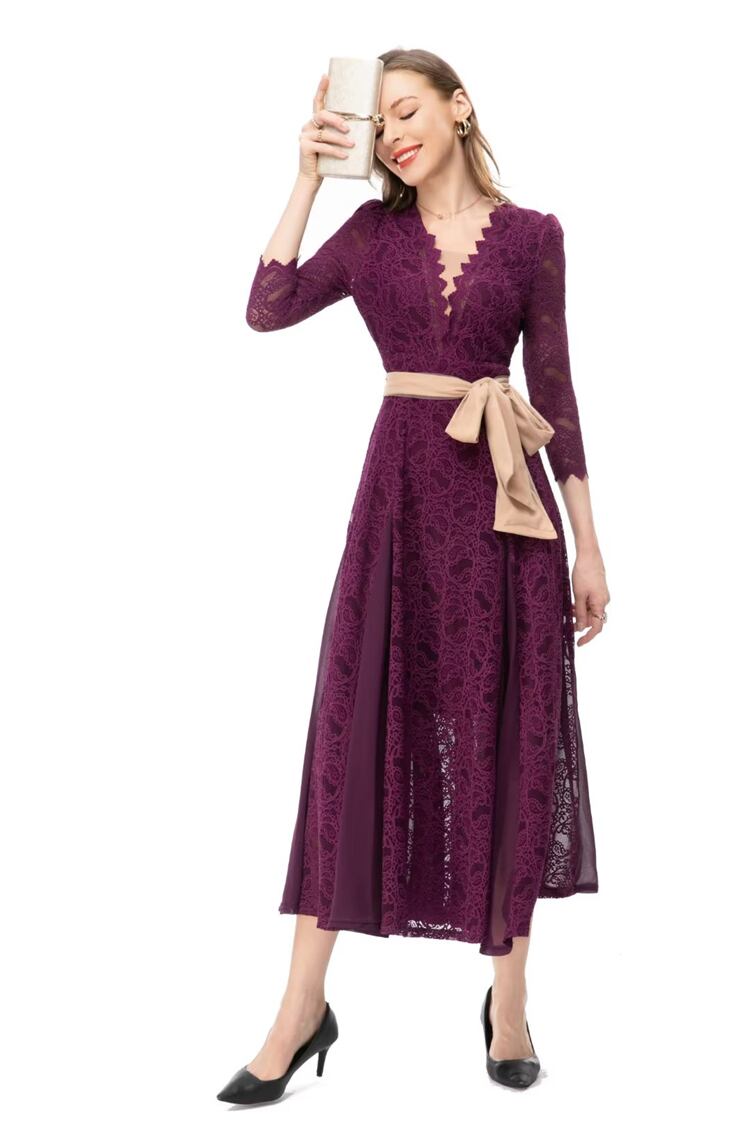 春ののゴージャスな有名人レース スリム ミディ ドレス パーティー休日 スプリング 春物