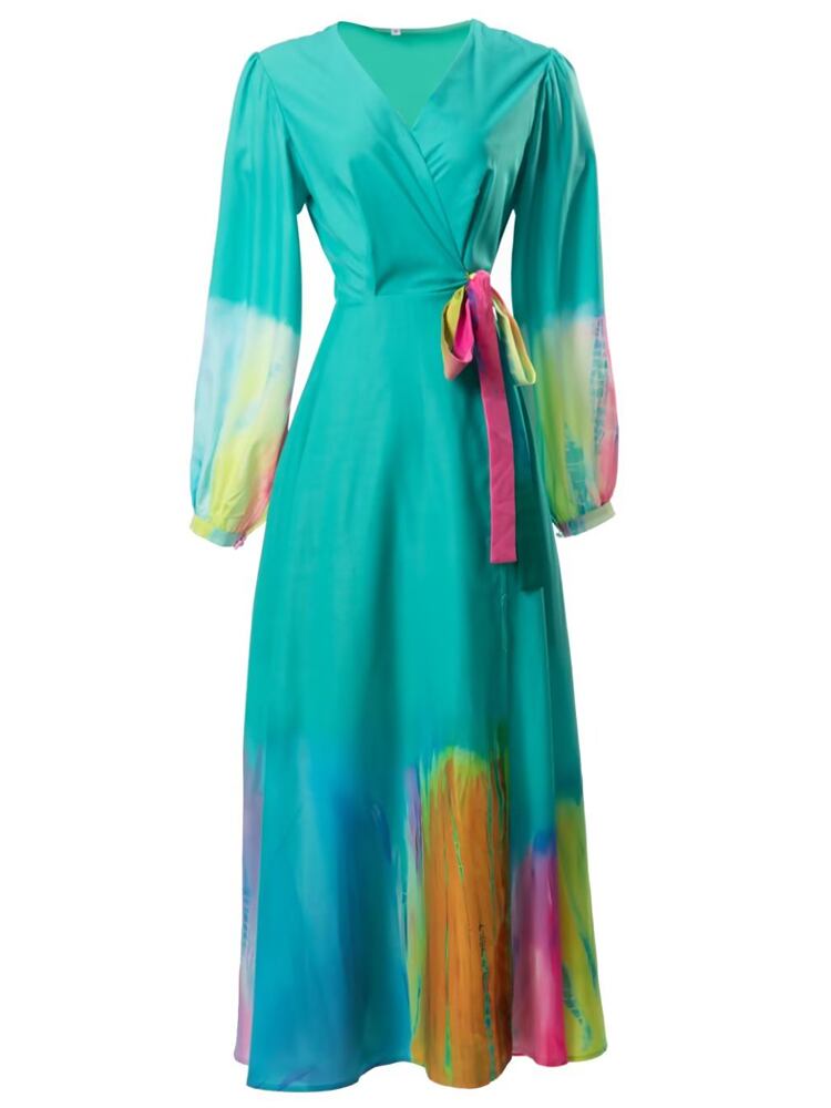 春のの有名人長袖プリント ロング ドレス パーティー ホリデー ドレス スプリング 春物