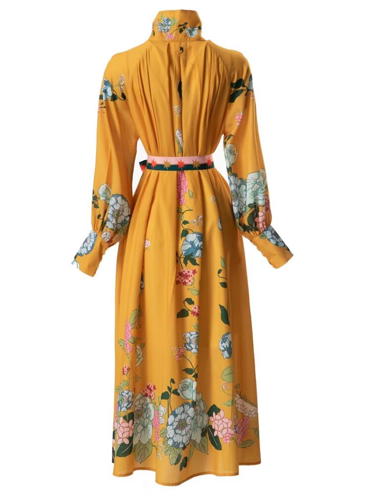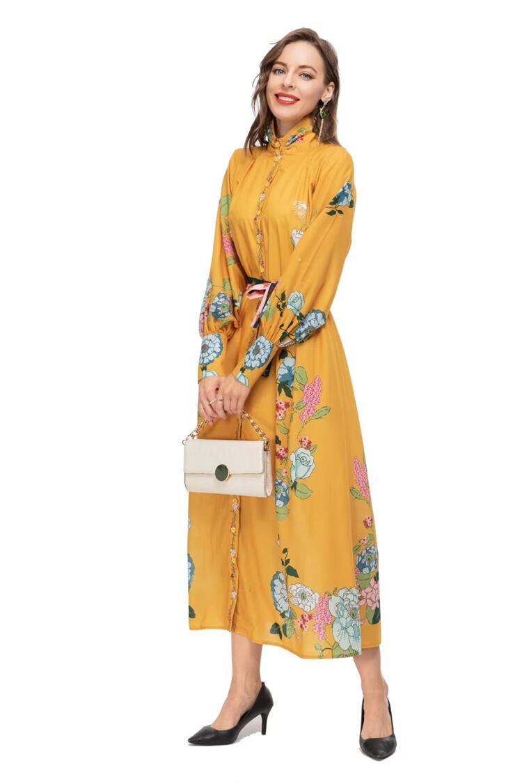春秋ののゴージャスなランタンスリーブプリントロングドレスパーティーホリデー スプリング 春物 オータム 秋物