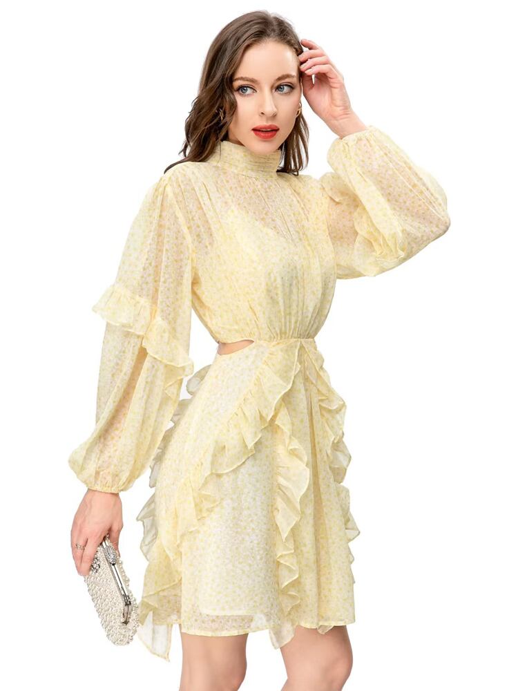 春のの豪華な長袖プリント ミニドレス パーティー ホリデー ドレス ロング スプリング 春物