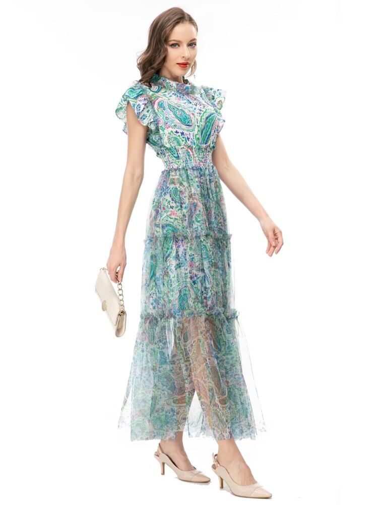 夏ののボヘミアン セレブリティ プリント ロング ドレス パーティー ホリデー ドレス サマー 夏物
