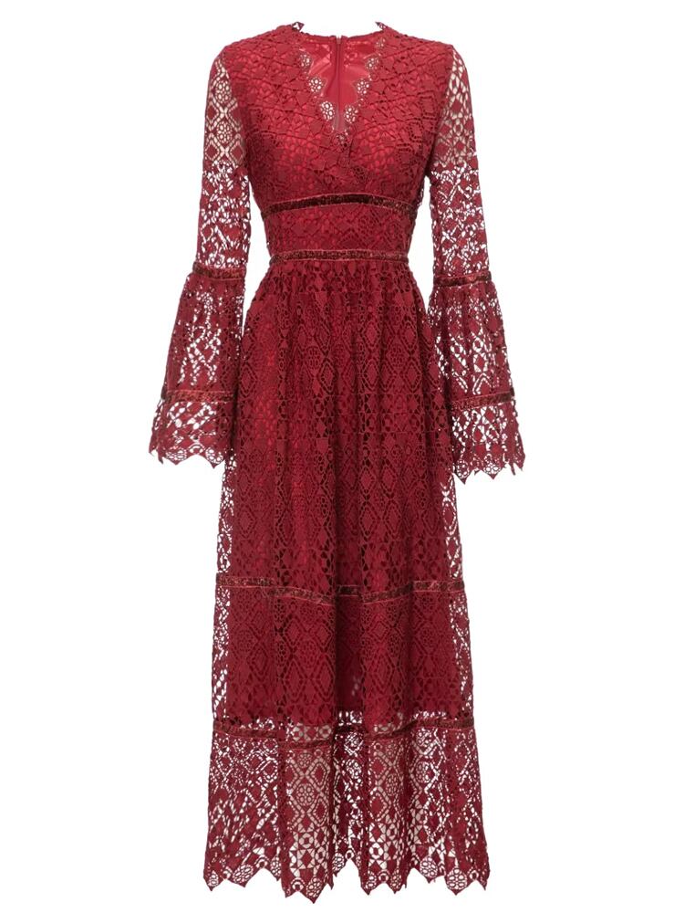 春秋ののセレブ長袖レーススリムミディドレスパーティードレス ロング スプリング 春物 オータム 秋物