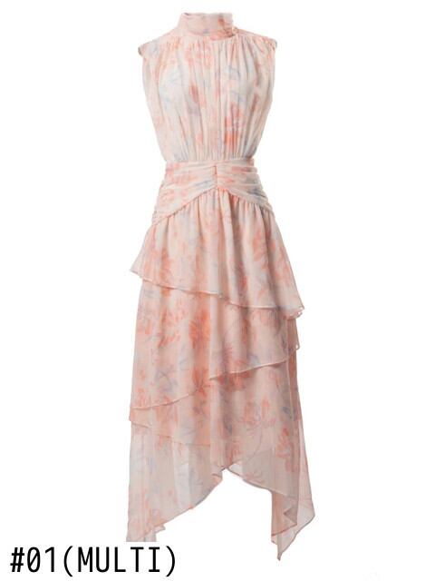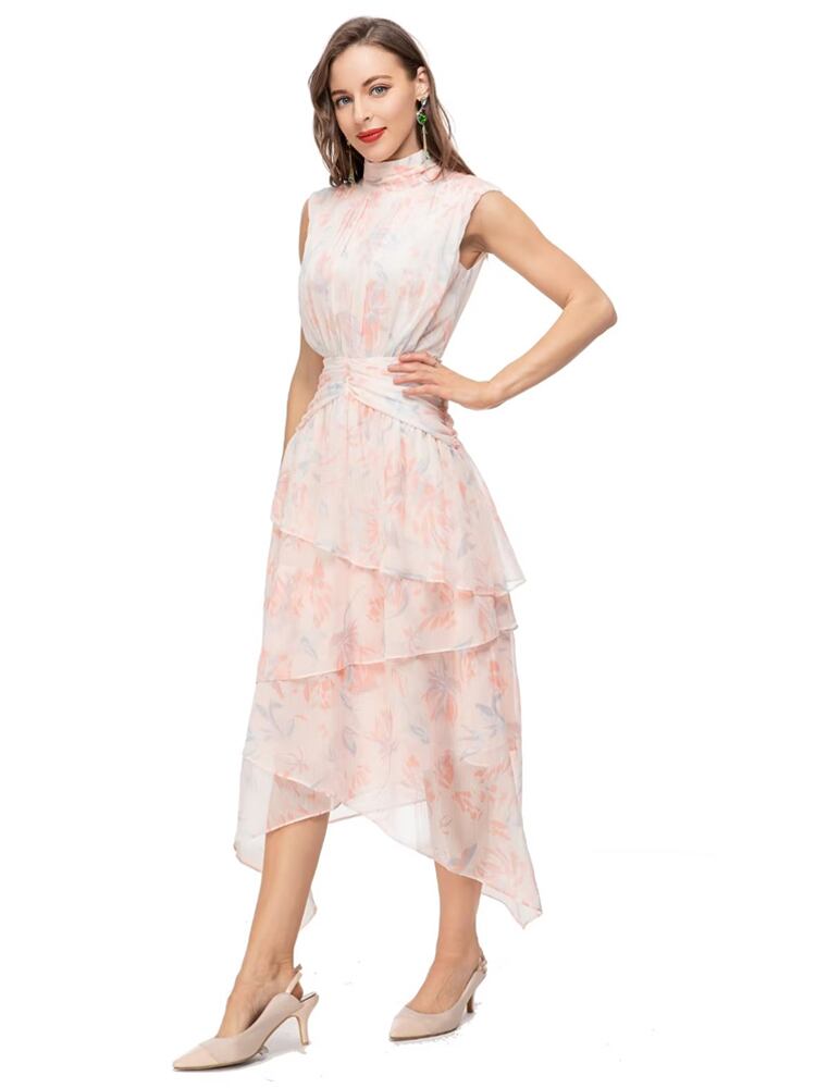 夏のの有名人ノースリーブ プリント不規則なミディ ドレス パーティー休日 サマー 夏物
