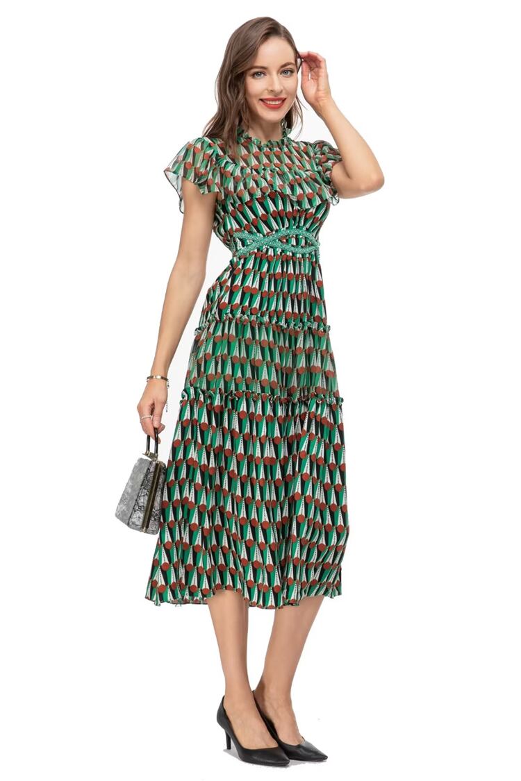 夏のの有名人ベアリング スリム プリント ミディ ドレス パーティー ホリデー ドレス サマー 夏物