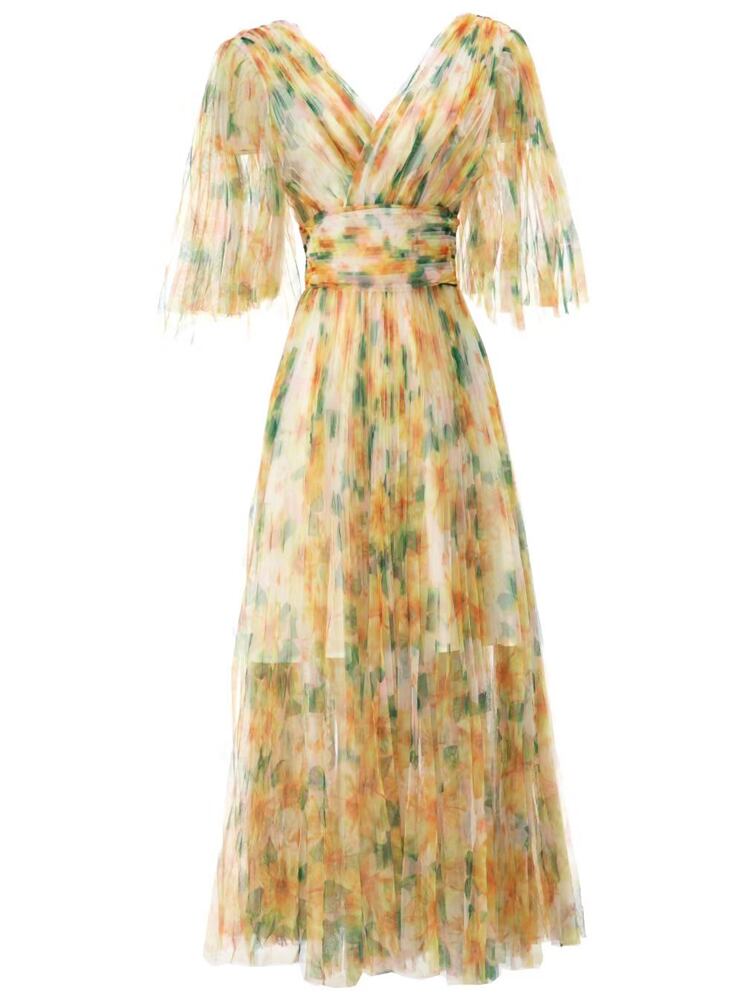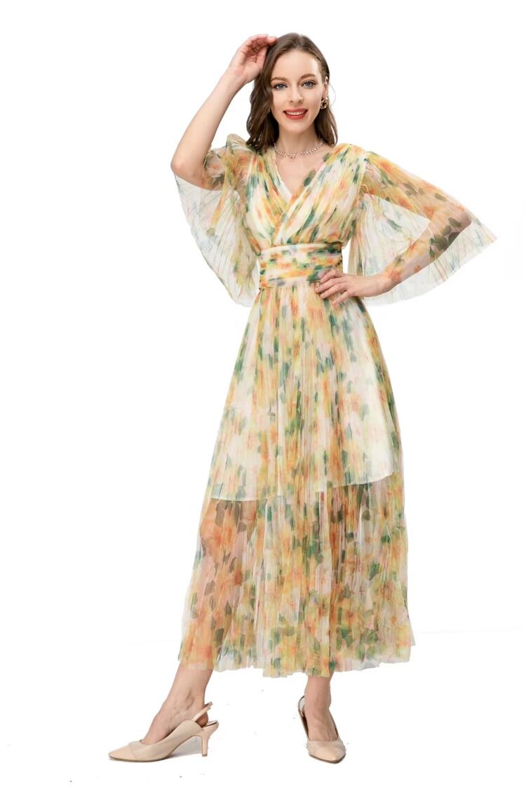 夏のの豪華な有名人のプリント メッシュ ロング ドレス パーティー ホリデー ドレス サマー 夏物