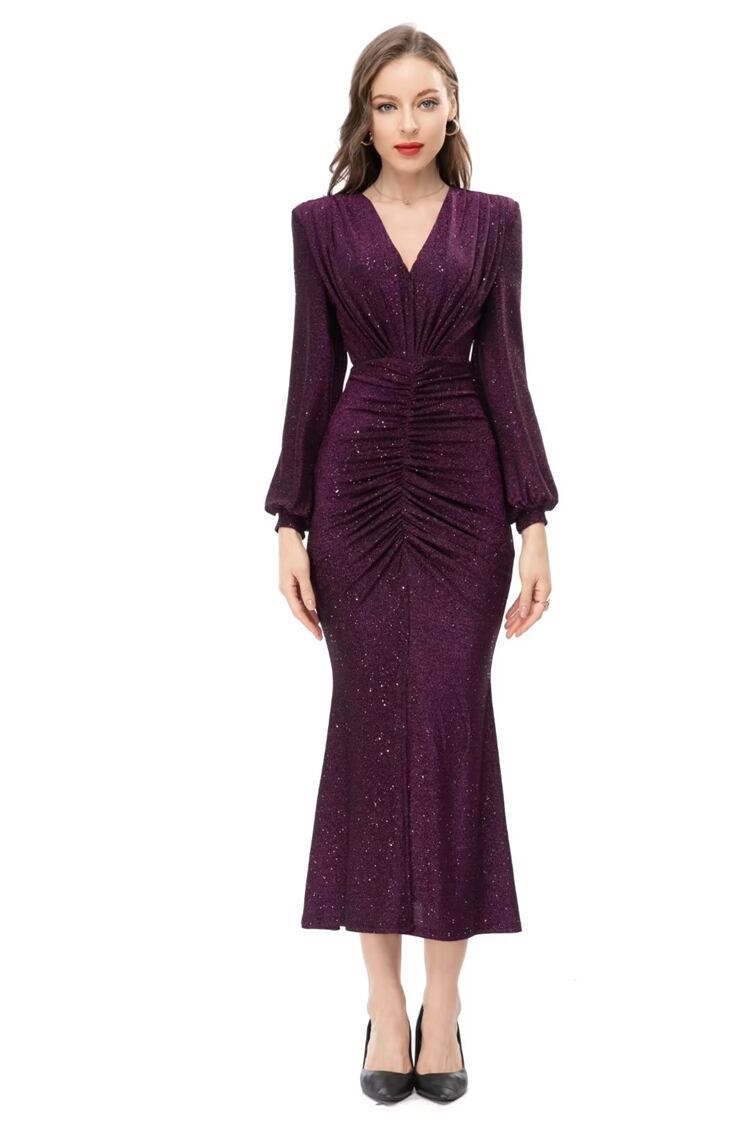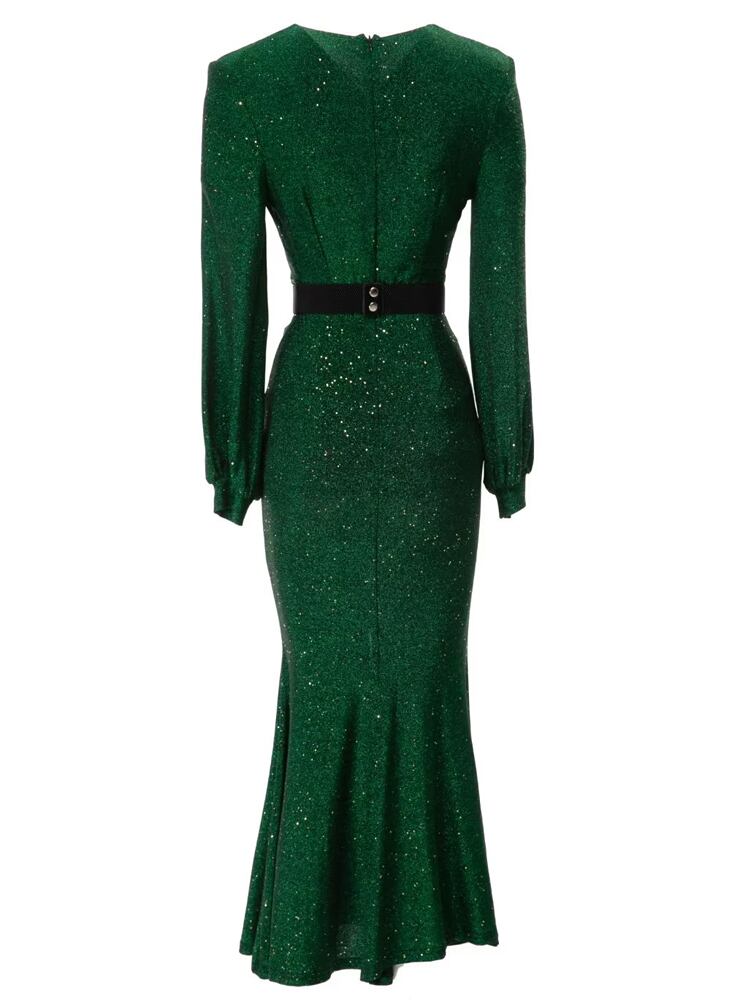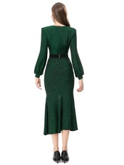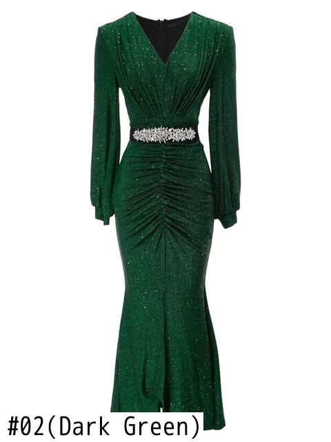 春のの豪華な V ネック ダイヤモンド ベルト スリム ミディ ドレス パーティー ドレス スプリング 春物 ハーネス Vネック