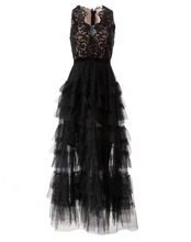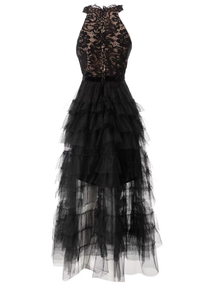 夏のの豪華な有名人の黒のノースリーブ メッシュ ロング ドレス パーティー休日 ブラック サマー 夏物