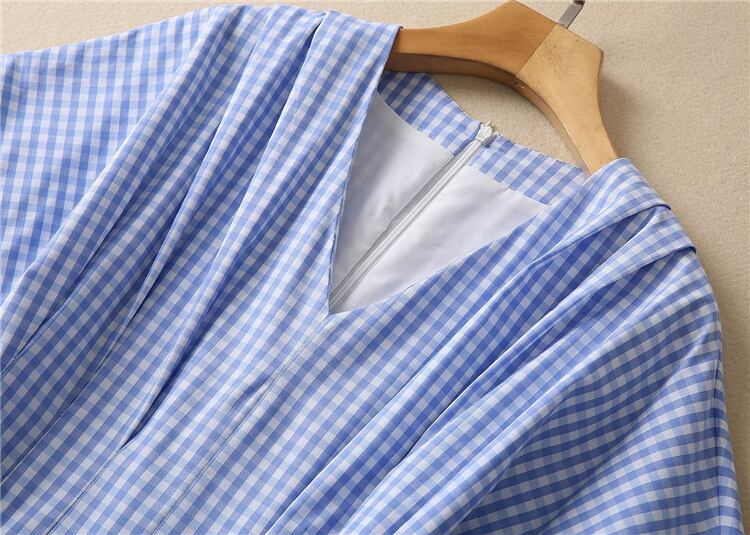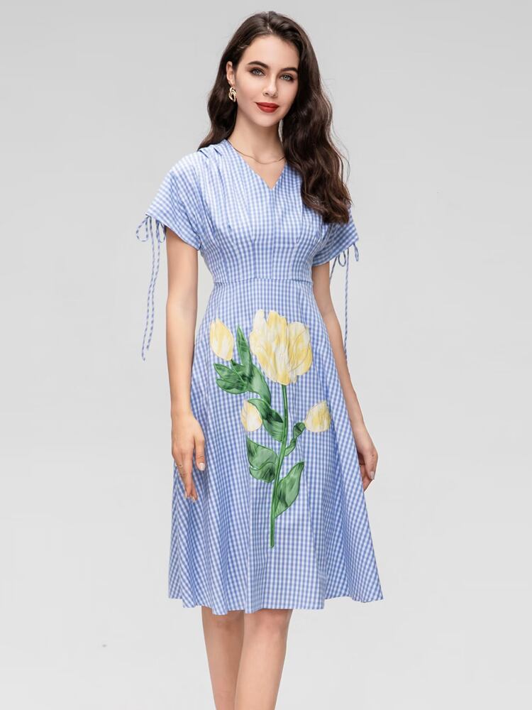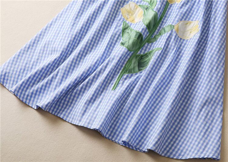 夏有名人刺繍格子縞ミディ ドレス パーティー ホリデー ドレス サマー 夏物