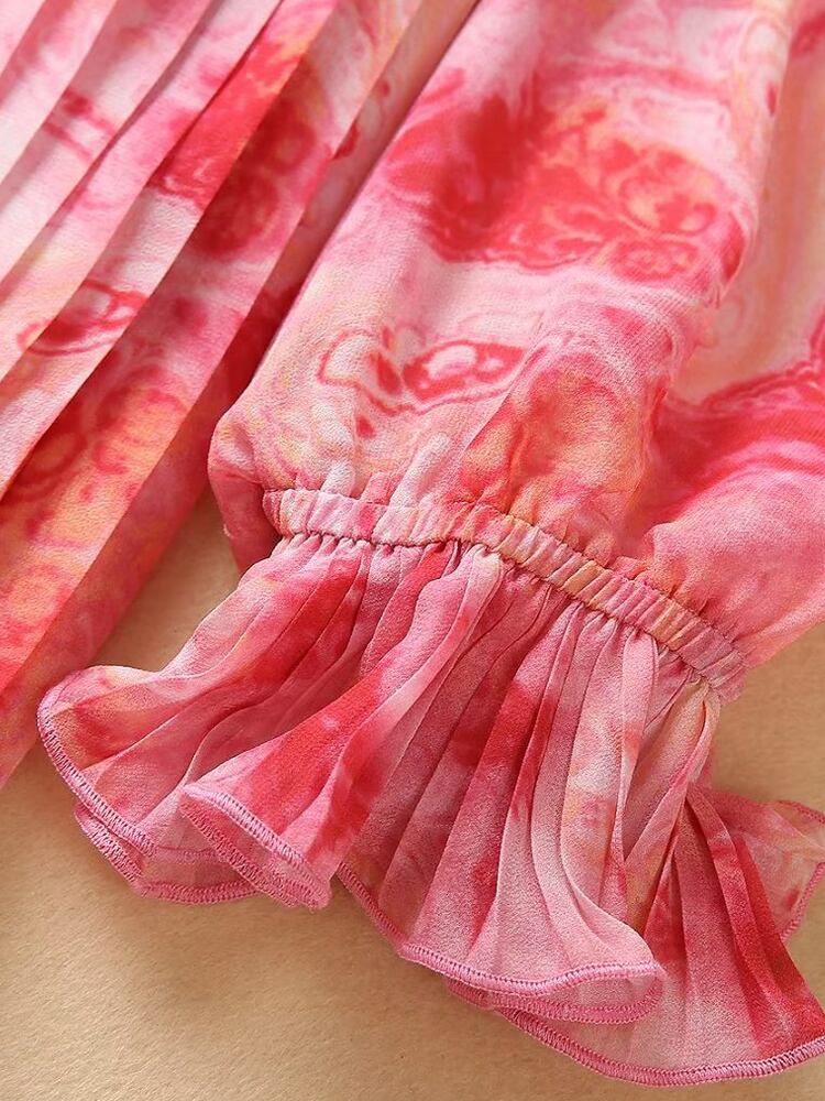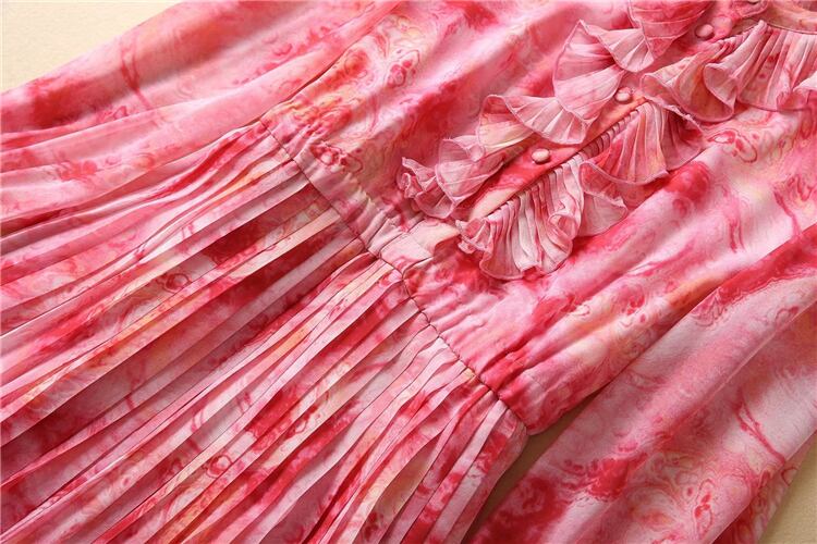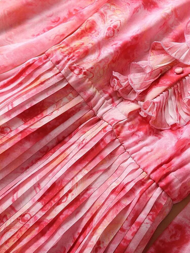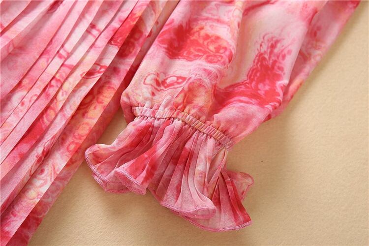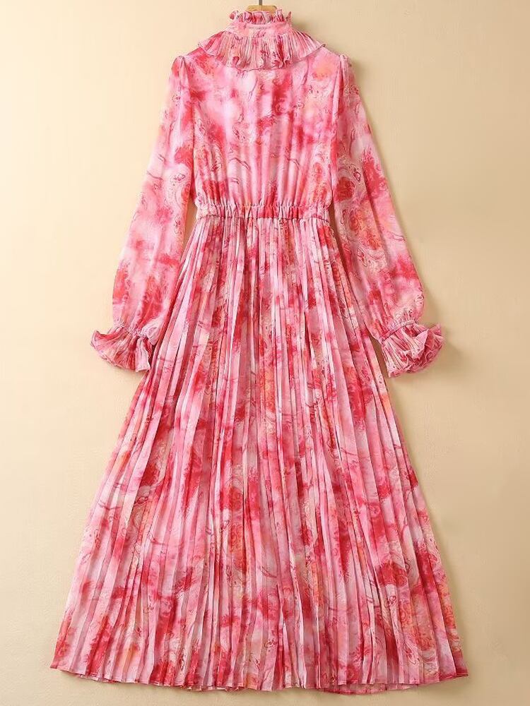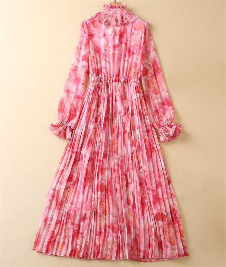 春秋豪華有名人プリント プリーツ ミディ ドレス パーティー ホリデー スプリング 春物 オータム 秋物