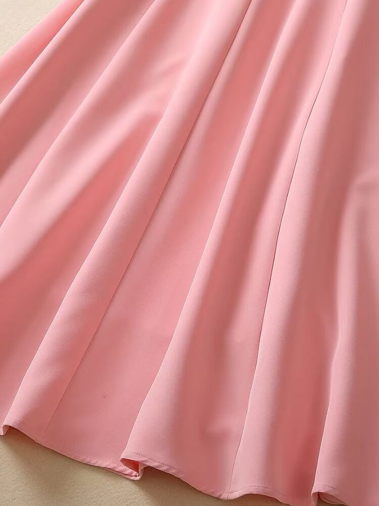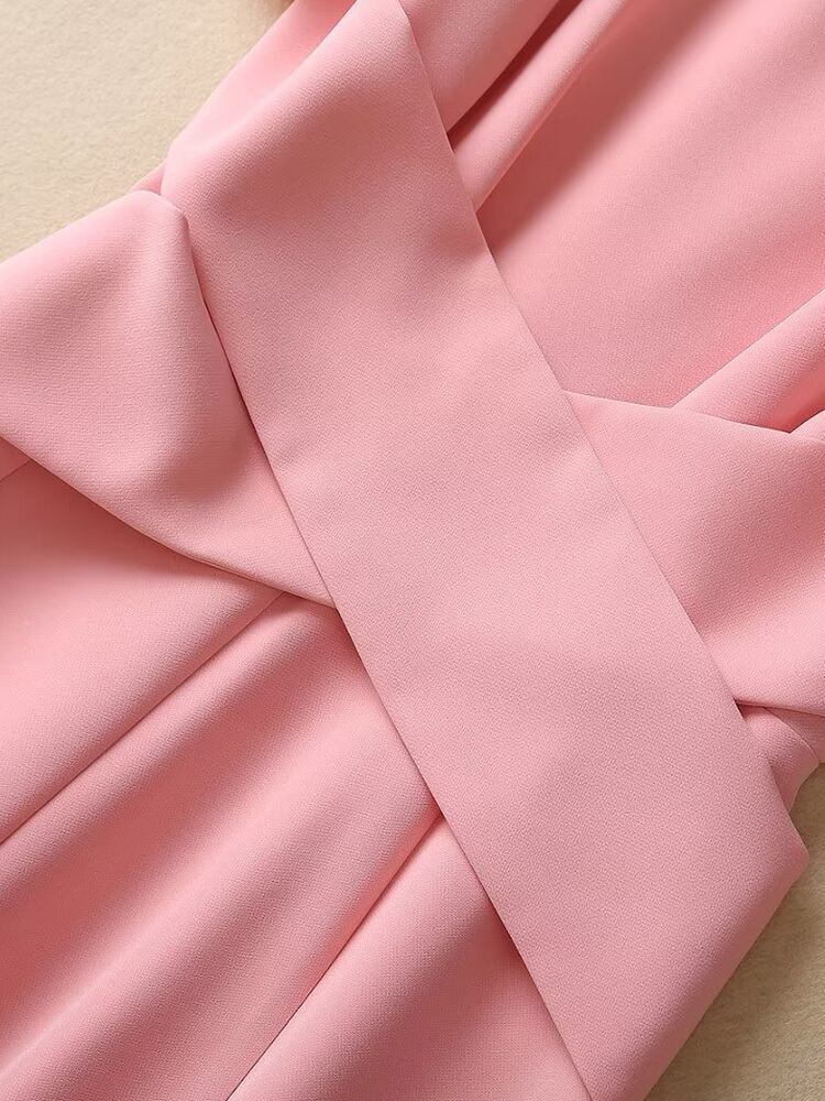 夏有名人半袖スリム ピンク ミディ ドレス パーティー ショート ハーフスリーブ サマー 夏物