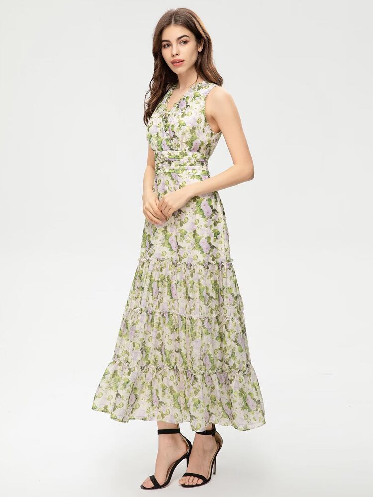 夏有名人ボヘミアン プリント スリム ミディ ドレス パーティー シックドレス サマー 夏物