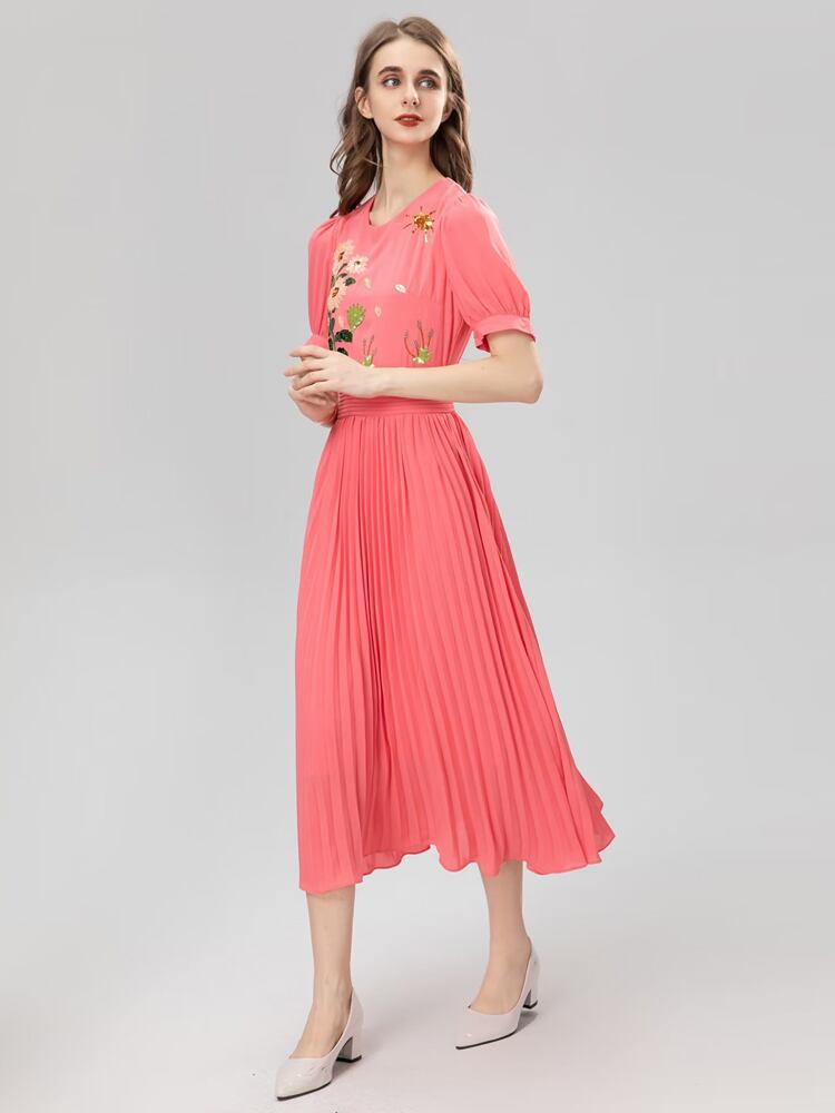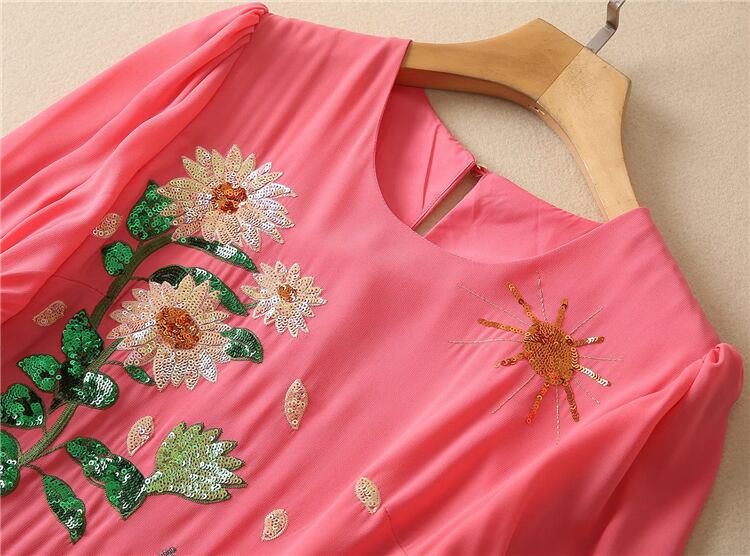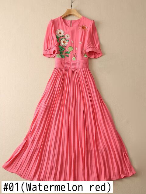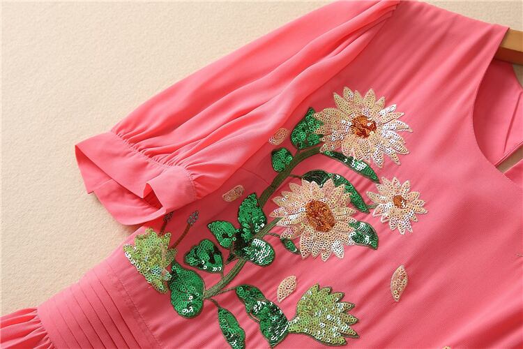 夏セレブ半袖スパンコール刺繍ミディドレスパーティーホリデー ショート ハーフスリーブ サマー 夏物