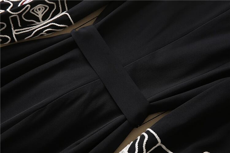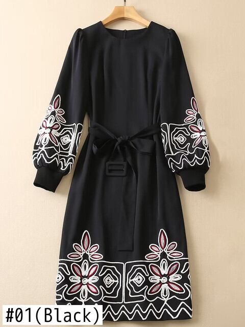 春秋有名人長袖刺繍黒ミディ ドレス パーティー ロング ブラック スプリング 春物 オータム 秋物