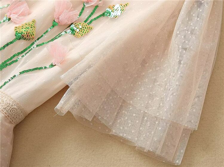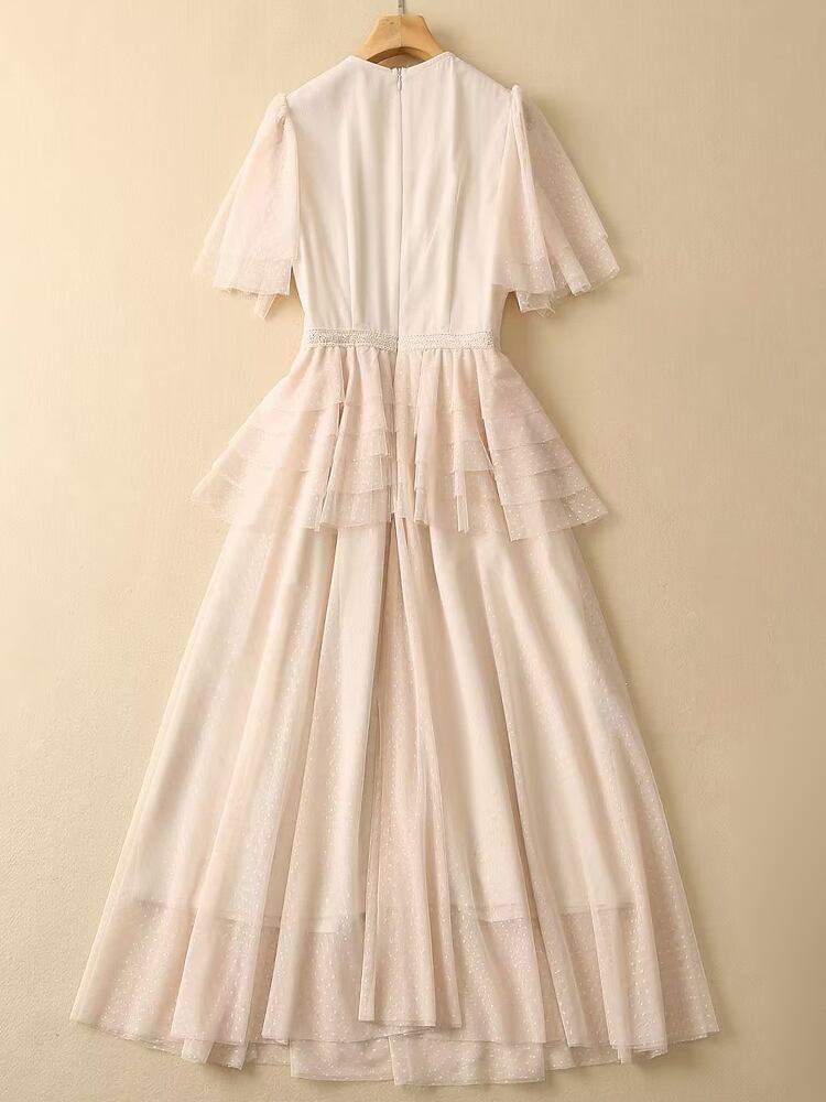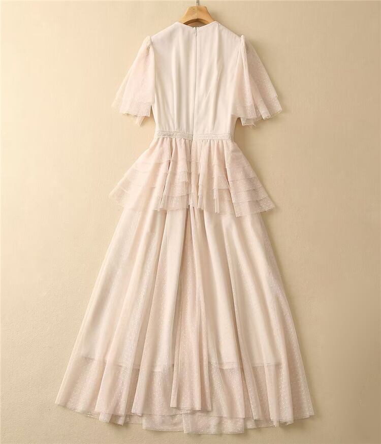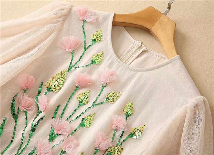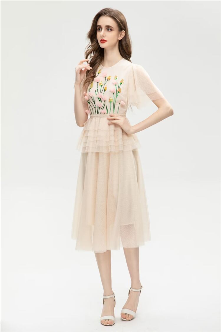 夏シックフリル スパンコール刺繍メッシュ ミディ ドレス パーティー ホリデー サマー 夏物