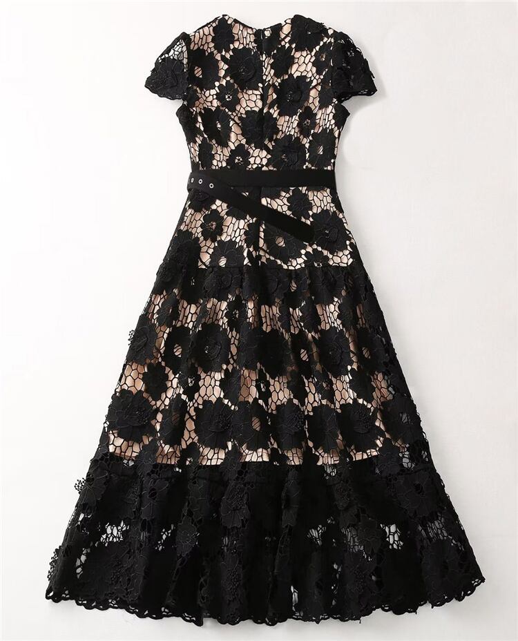 夏有名人半袖中空ミディ ドレス パーティー ドレス ショート ハーフスリーブ サマー 夏物