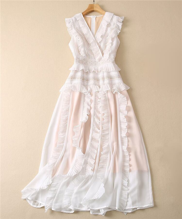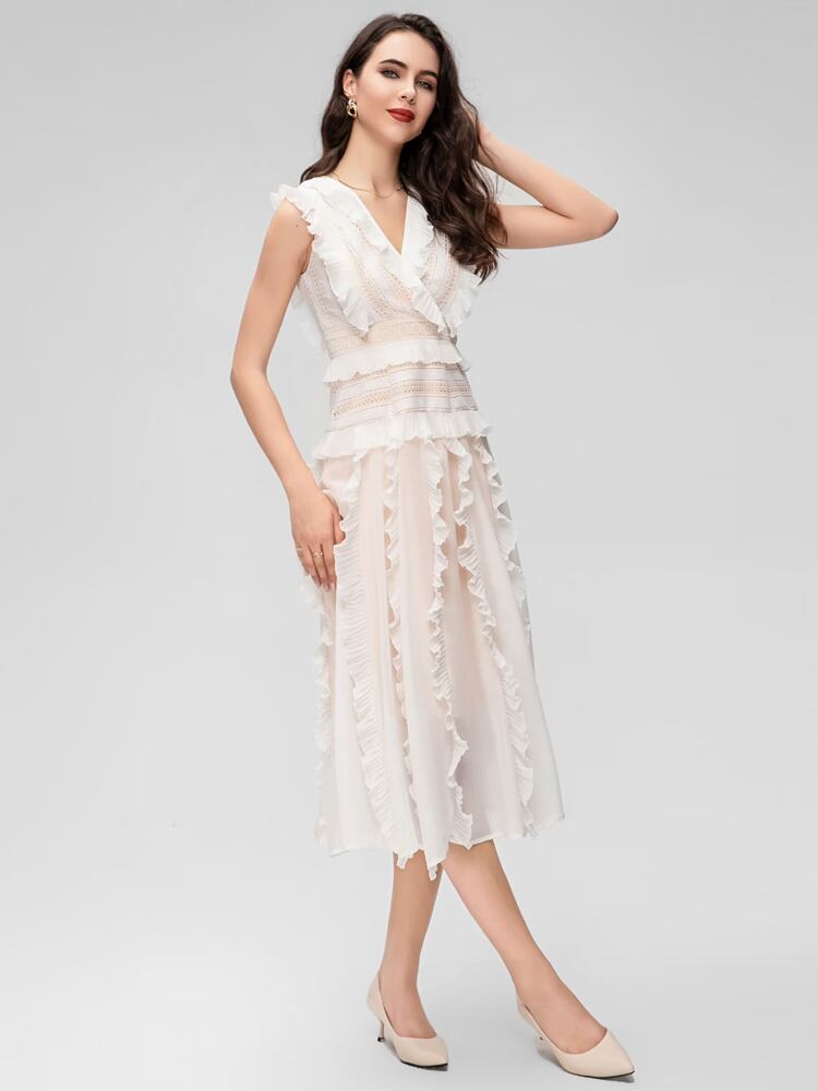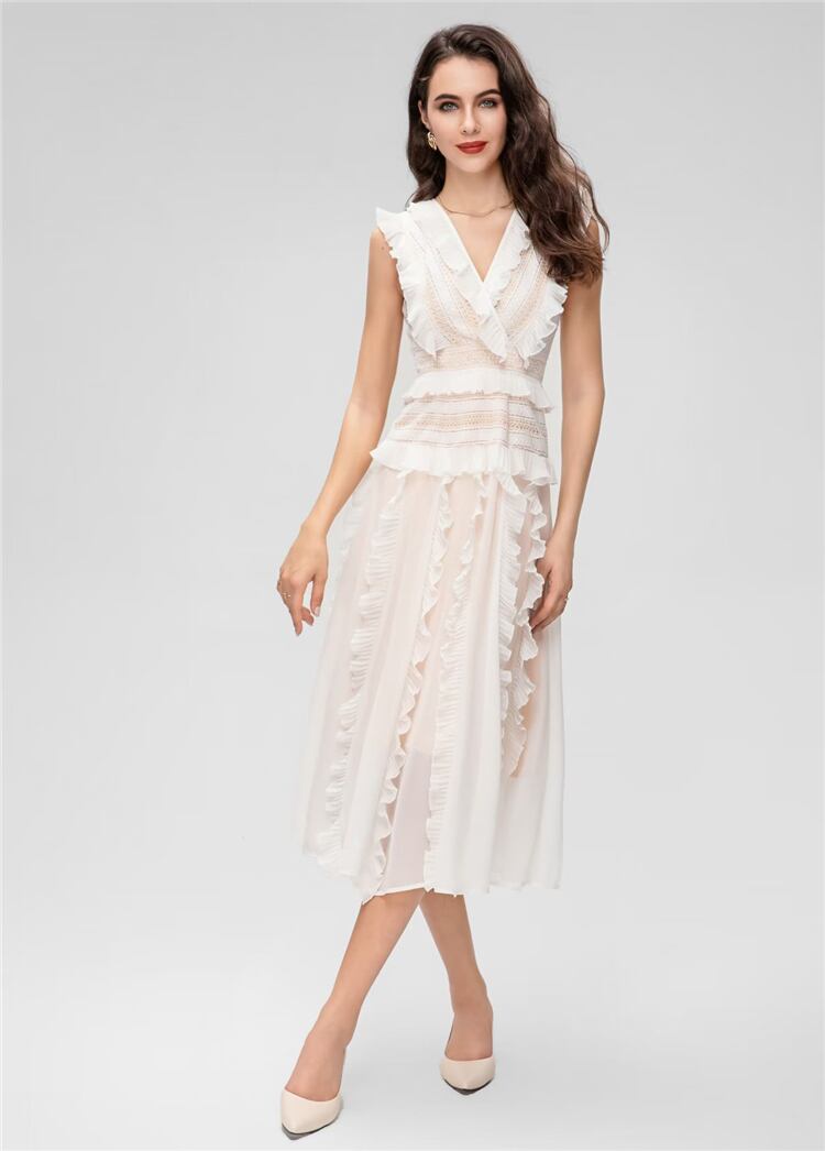夏有名人 V ネック フリル ミディ ドレス パーティー ホリデー ドレス サマー 夏物 Vネック