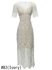 夏豪華有名人半袖レース スリム ミディ ドレス パーティー ショート ハーフスリーブ サマー 夏物
