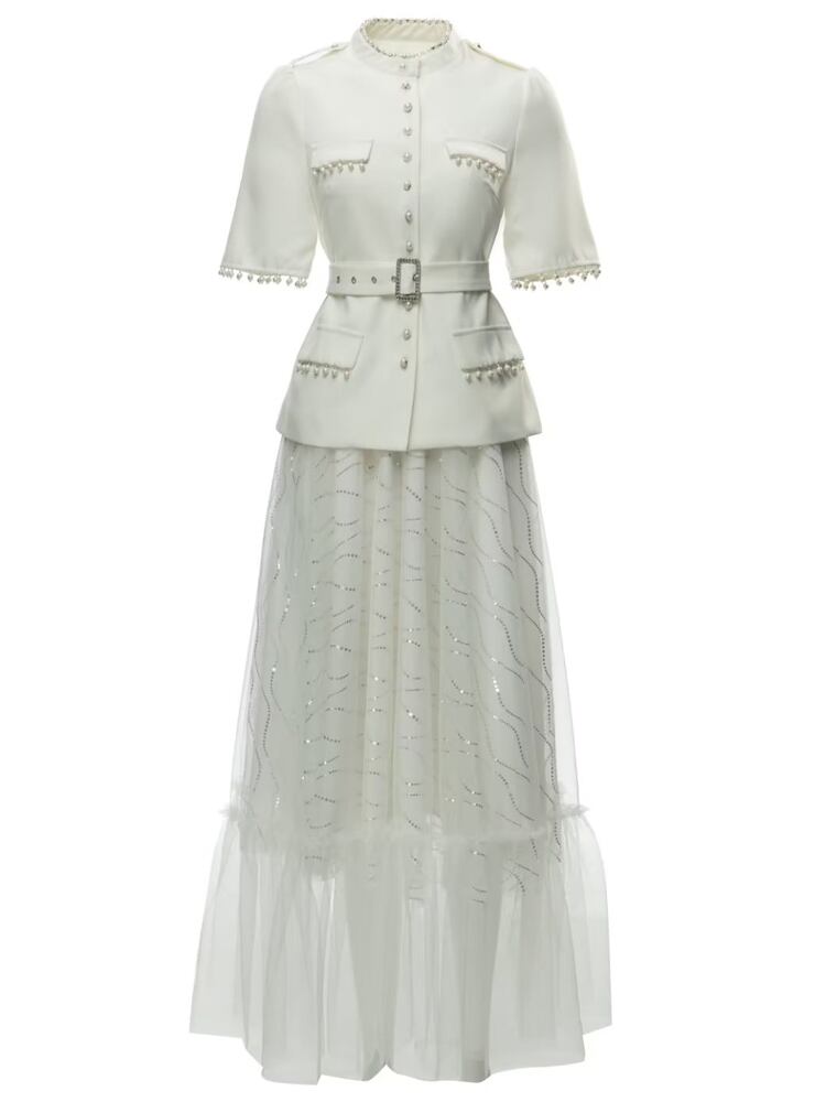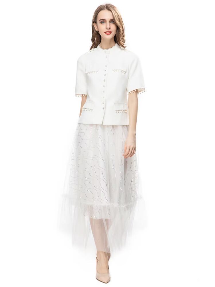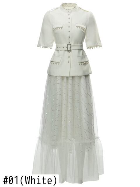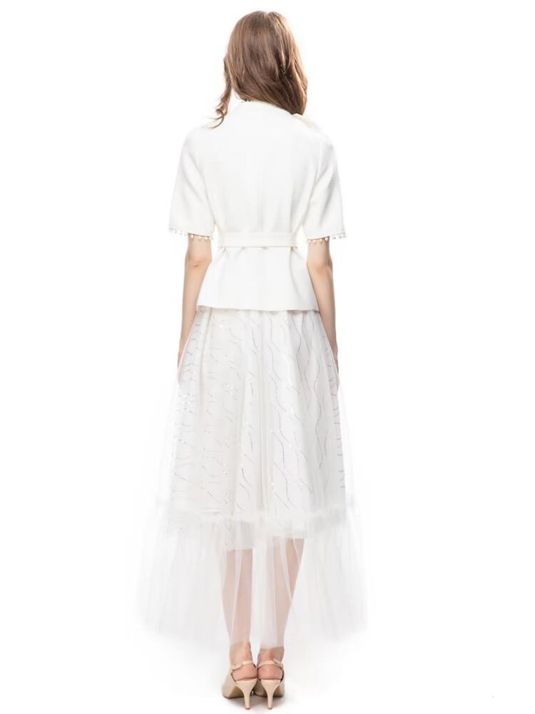 春夏レディースセットTelホワイトトップスメッシュハーフスカートスーツ スプリング 春物 サマー 夏物