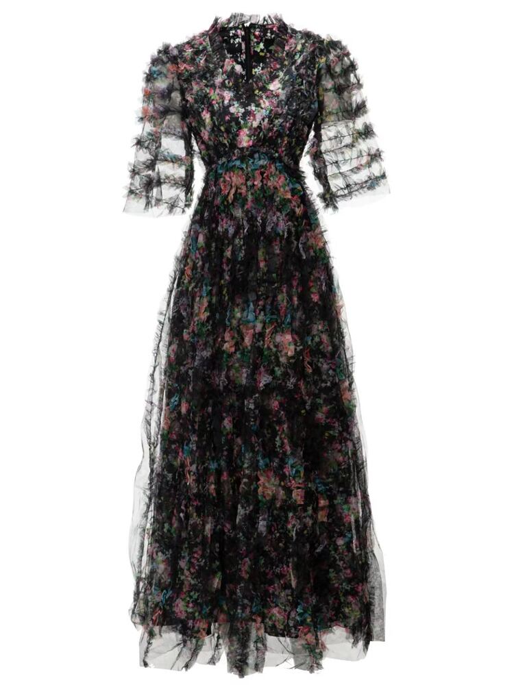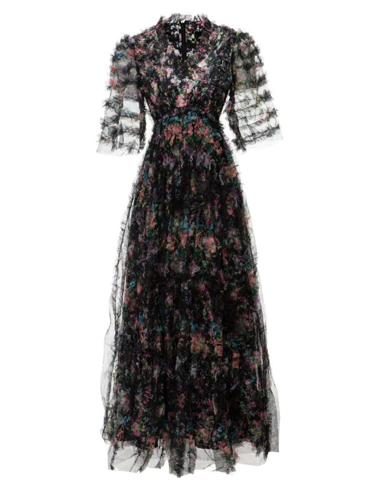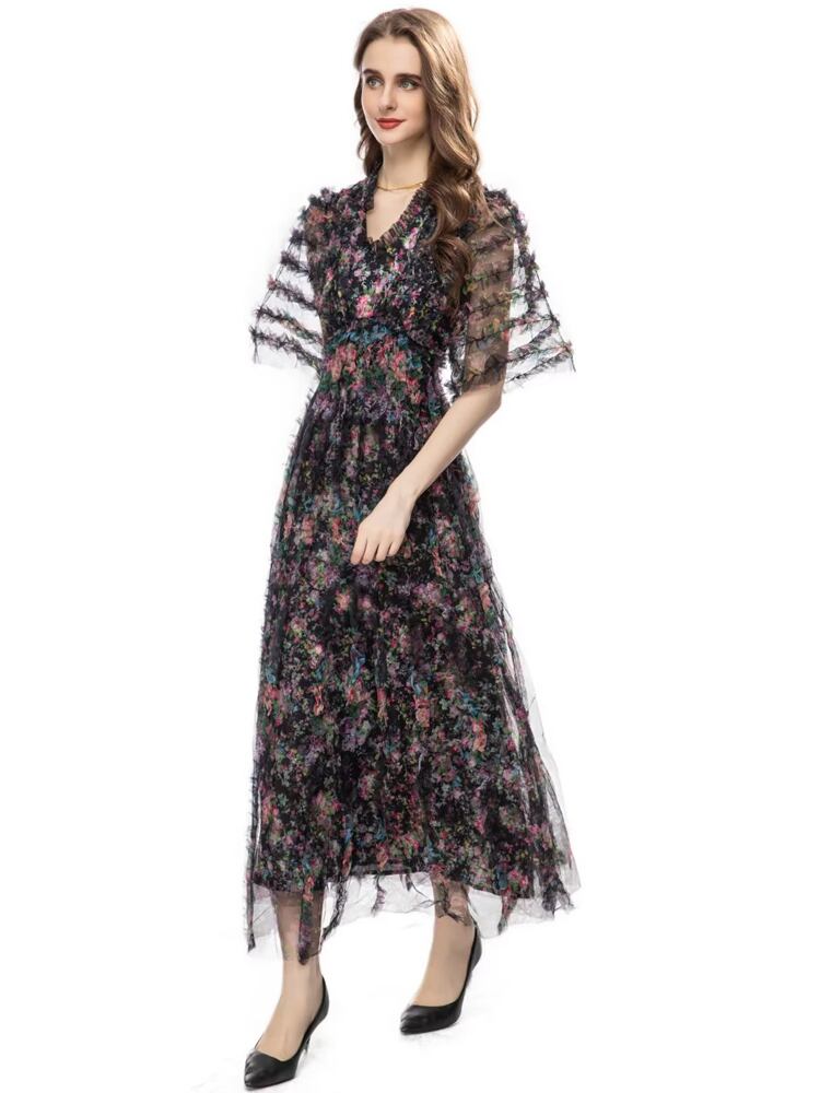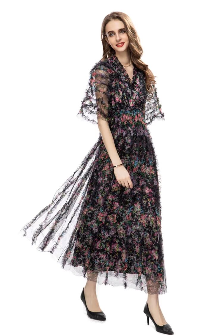 夏豪華有名人プリント メッシュ ロング ドレス パーティー休日 サマー 夏物