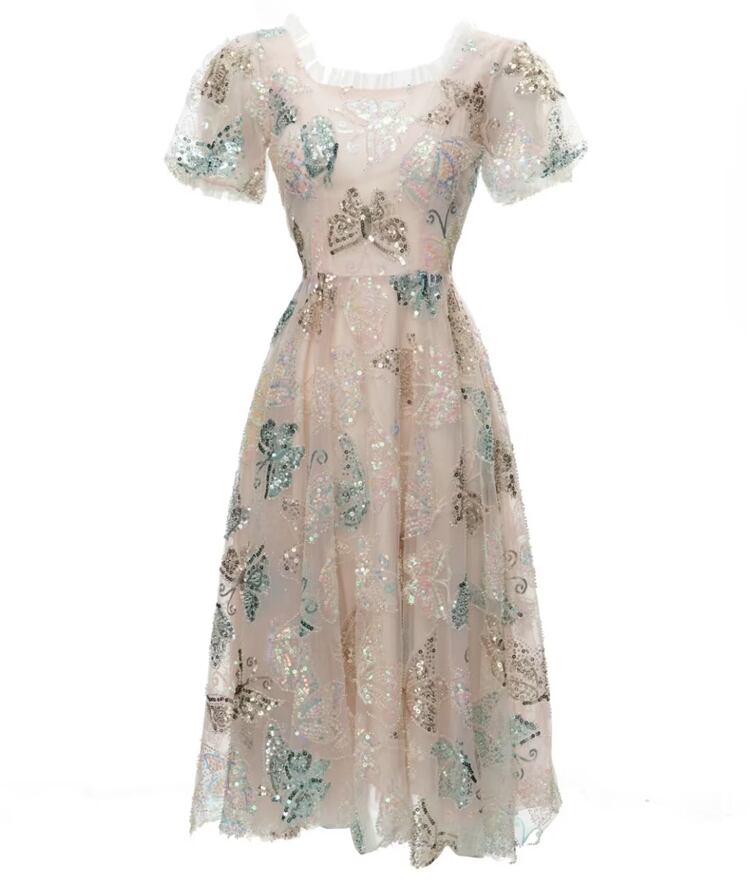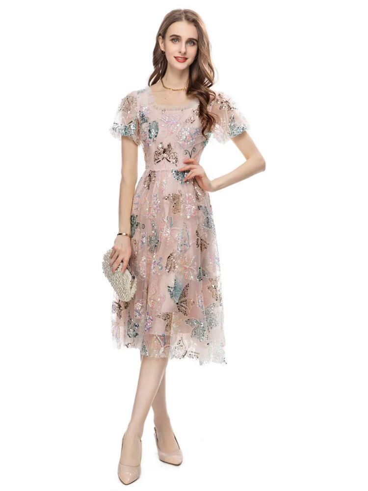 夏豪華有名人セクシースパンコール刺繍ミディ ドレス パーティー サマー 夏物