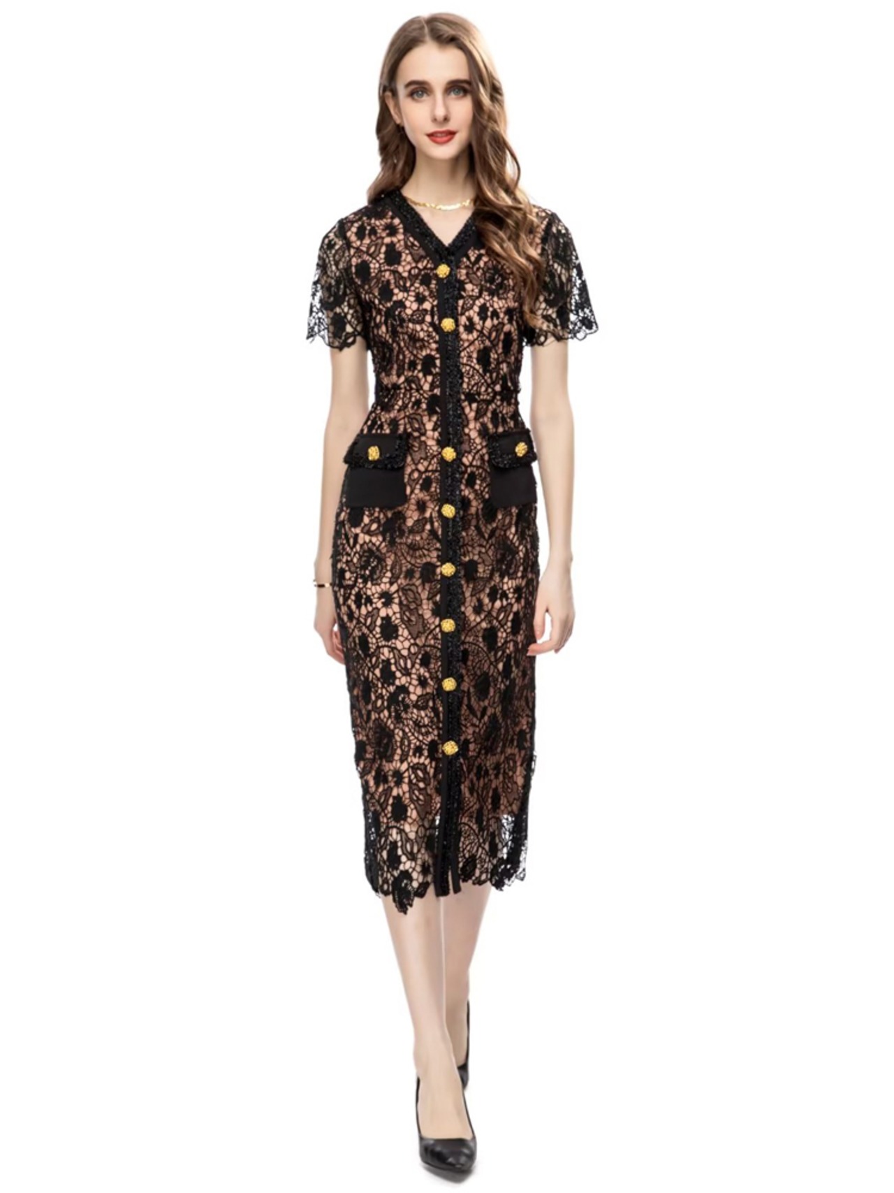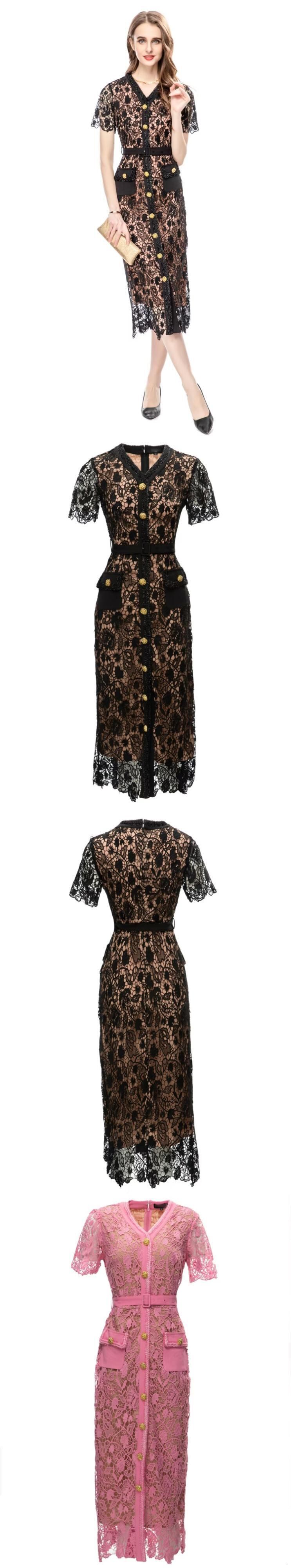 夏ゴージャス有名人レース スリム ミディ ドレス パーティー サマー 夏物