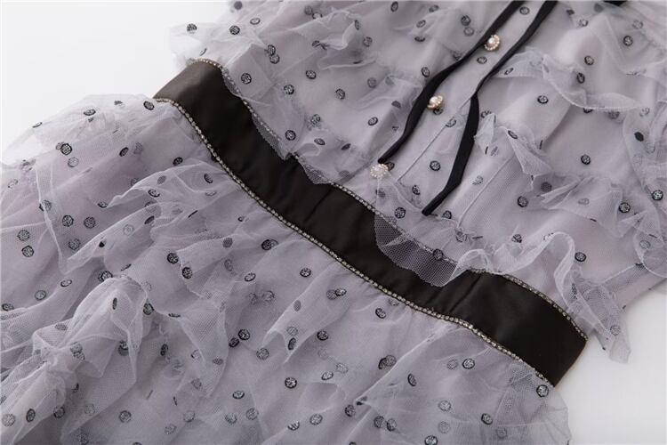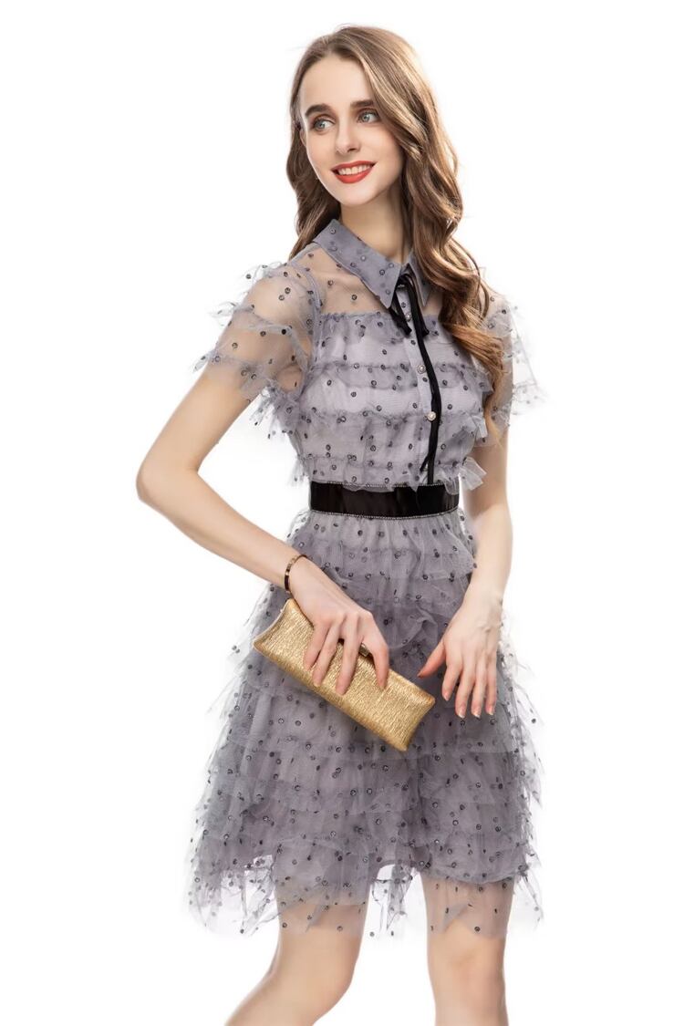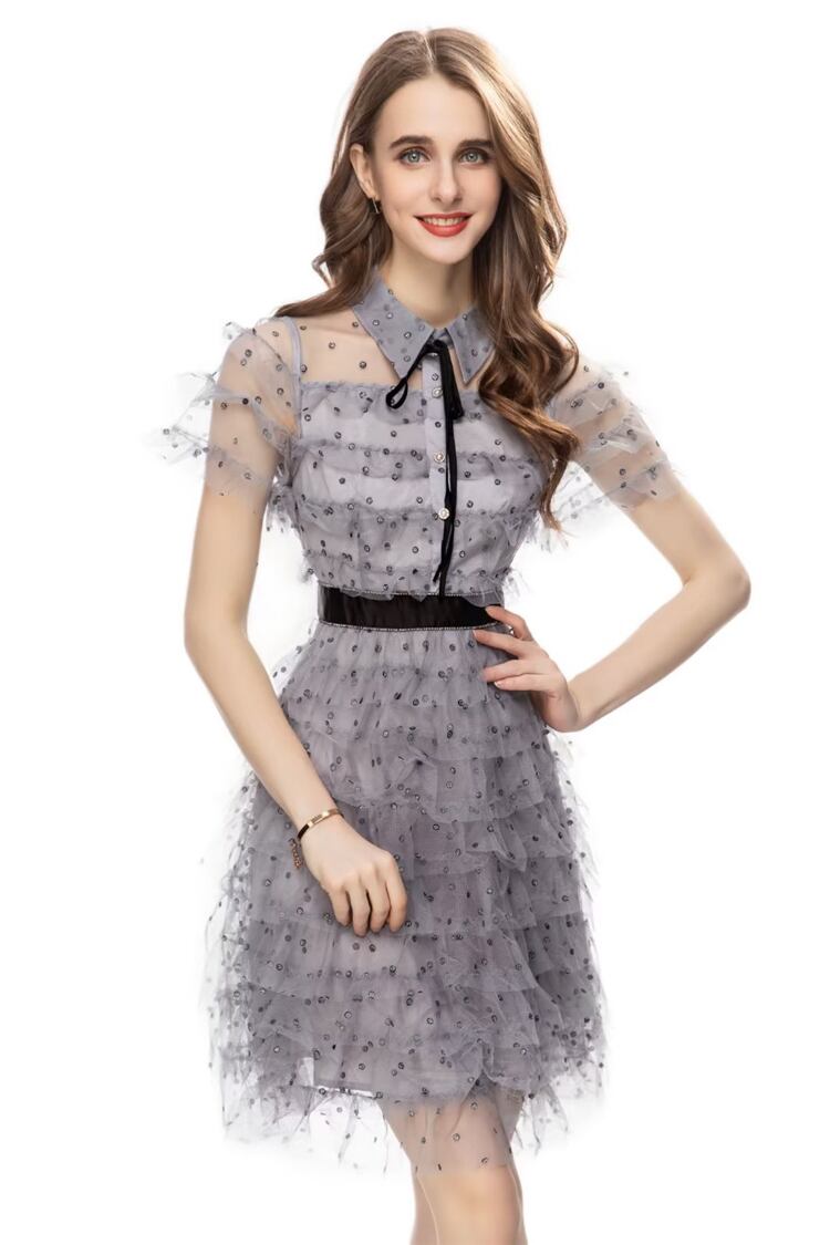 夏有名人半袖ドット プリント メッシュ ドレス パーティー休日 ショート ハーフスリーブ サマー 夏物