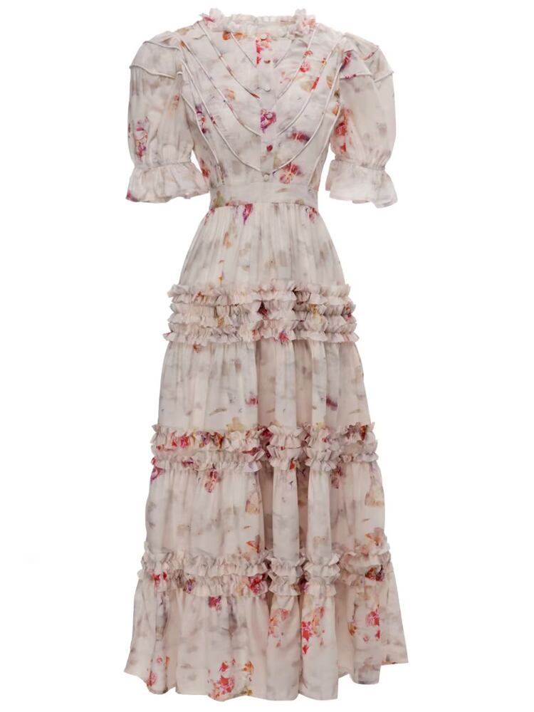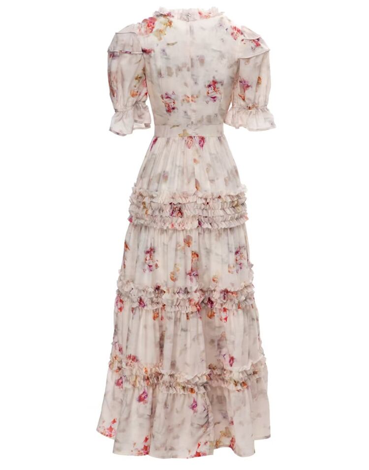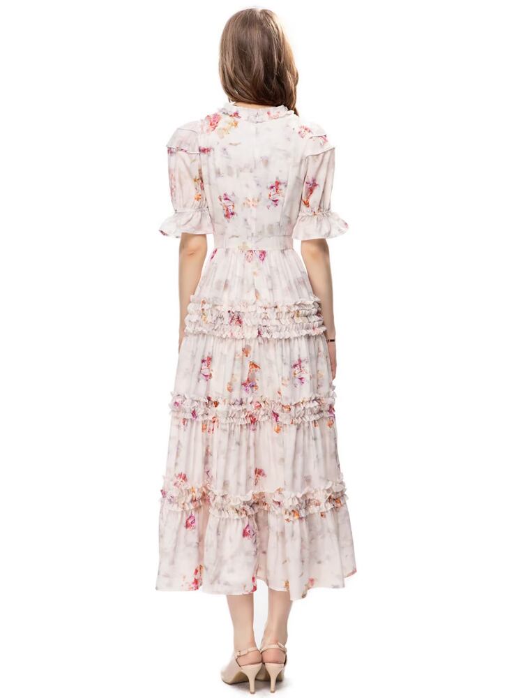 夏有名人半袖プリント フリル ミディ ドレス パーティー ショート ハーフスリーブ サマー 夏物
